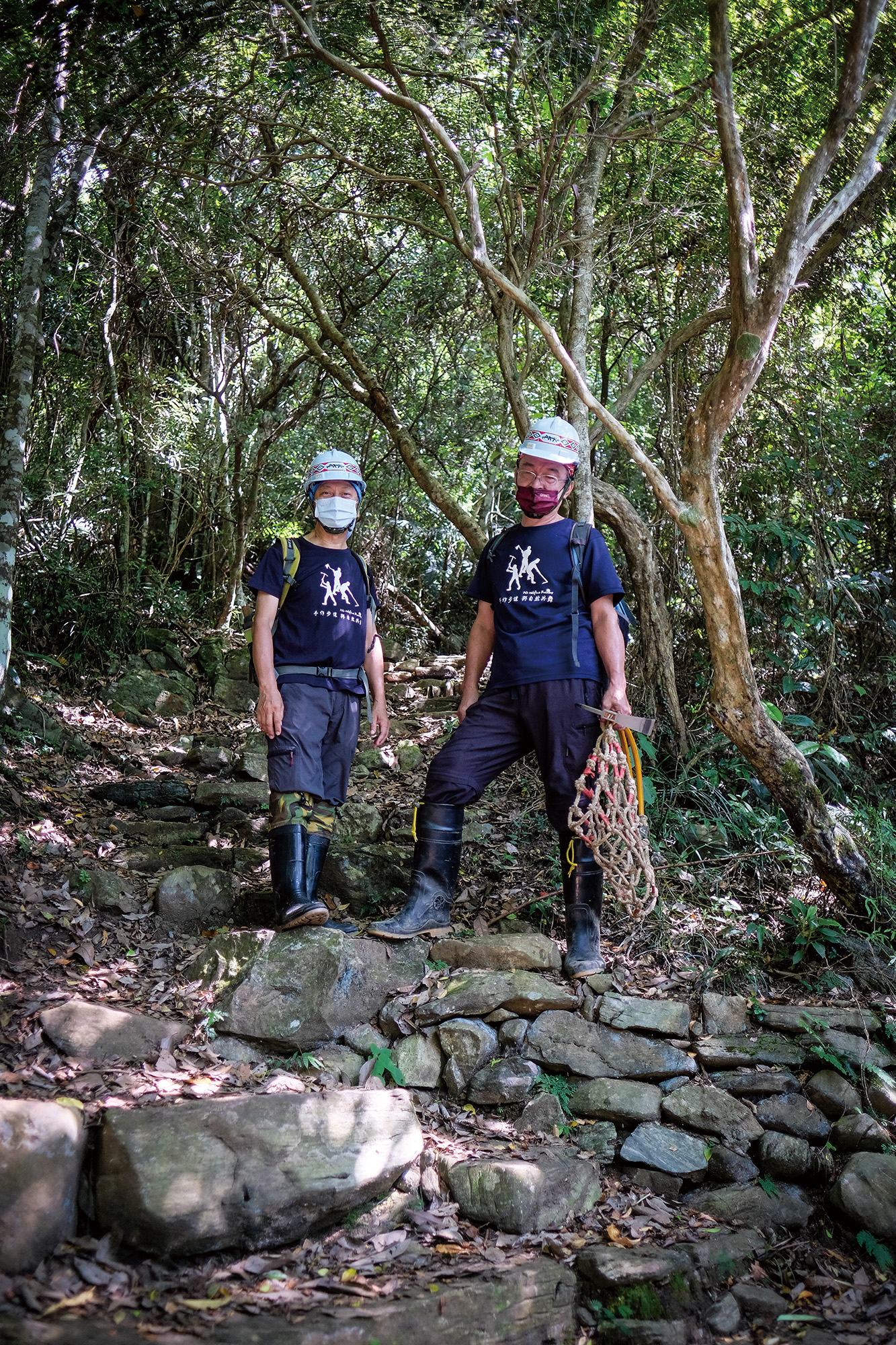 ฟางรุ่ยข่าย (ซ้าย) อาสาสมัครดูแลรักษาเส้นทางเดินเขาประจำอุทยานแห่งชาติไท่หลู่เก๋อ และหลินกั๋วเหวิน (ขวา) ได้ทำงานสร้างเส้นทางเดินเขาด้วยสองมือของทั้งคู่มาเป็นเวลานานถึง 12 ปีแล้ว