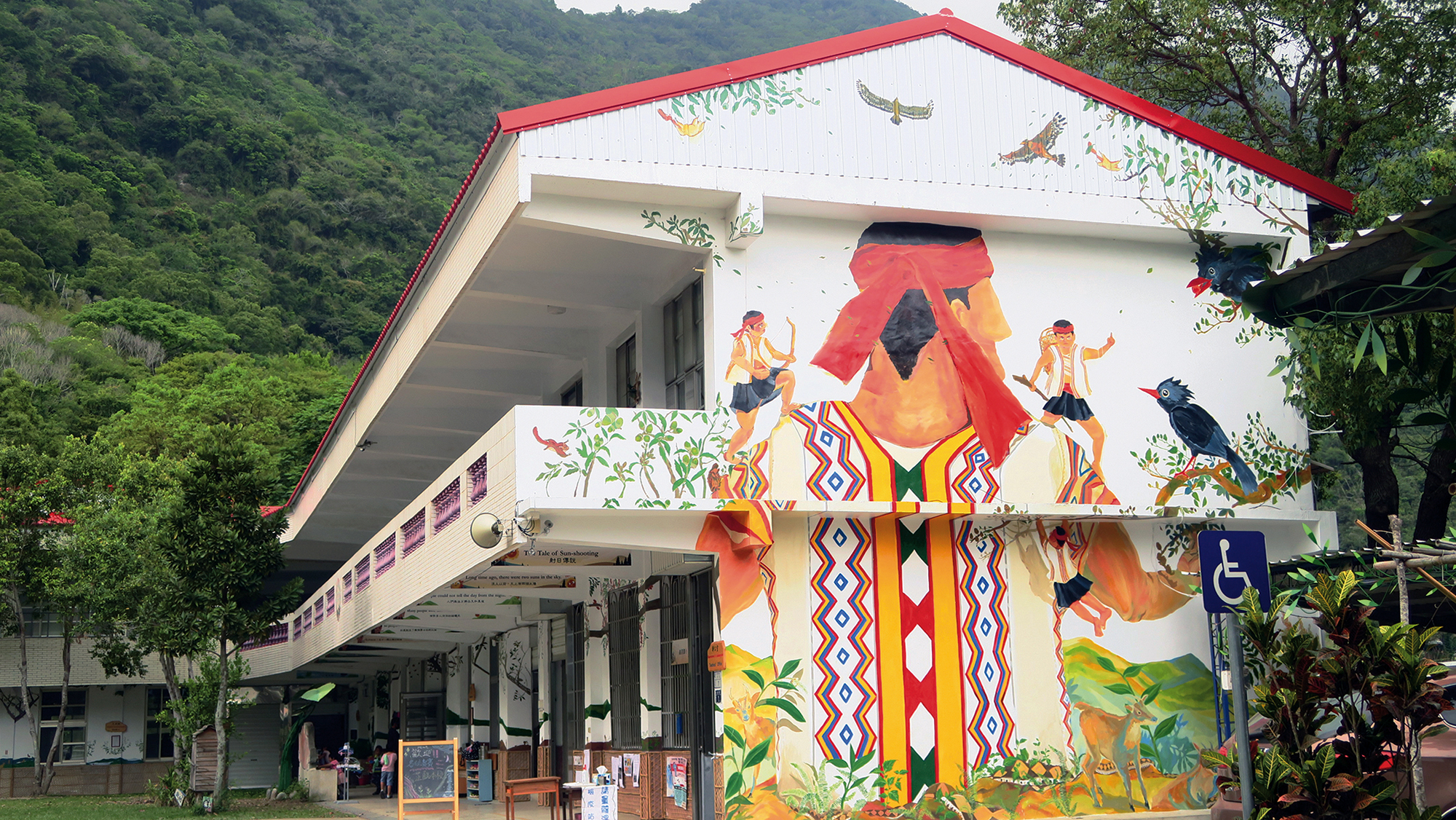 การเรียนรู้ผ่านอาหารไถตง ภาพวาดเกี่ยวกับการใช้ชีวิตของชนเผ่าปู้หนงบนผนังกำแพงของอาคารเรียน เป็นอีกจุดหนึ่งที่โดดเด่นเตะตาของโรงเรียนประถมศึกษา
