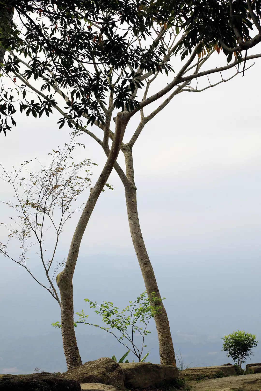 การพิชิตด่านแรกของการไต่เขา จะต้องเผชิญความท้าทายในการเดินข้ามรากต้นไม้รูปทรงแปลกประหลาดที่ตั้งเป็นแผ่นแข็ง และต้องเดินลอดผ่านกิ่งไม้บิดเกลียวที่ห้อยย้อยจากข้างบนลงมาข้างล่าง จากนั้นเดินเข้าไปในช่องที่แคบมากถึงกับต้องเดินผ่านด้วยด้านข้างของลำตัว ช่องแคบๆ ระหว่างซอกหินนี้เกิดจากแผ่นเปลือกโลกฟิลิปปินส์ดันตัวขึ้นมาจากทะเล เป็นทิวทัศน์ที่เป็นเอกลักษณ์ของเทือกเขาริมชายฝั่ง