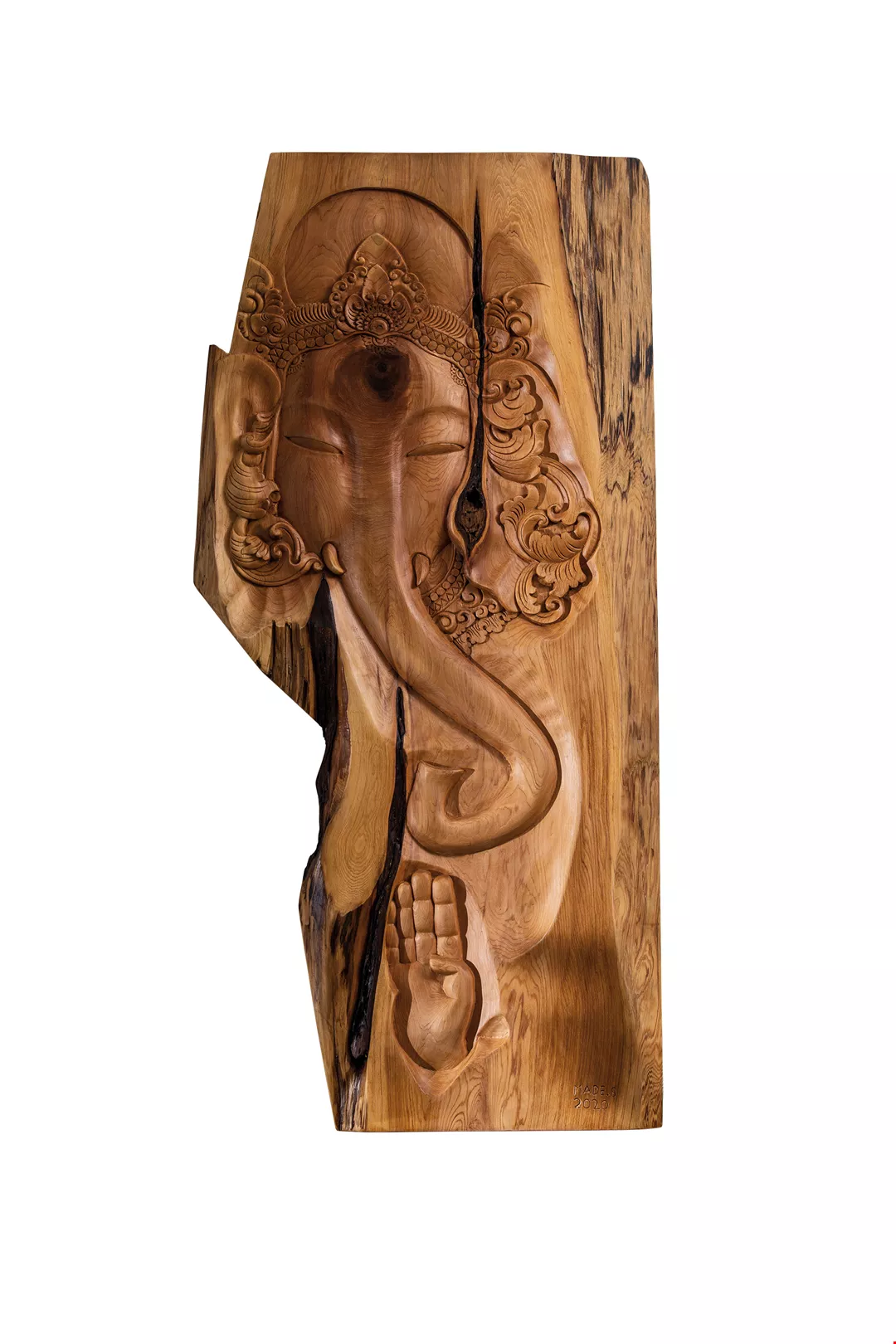 คานและเสาจากอาคารบ้านเรือนเก่าๆ, กระดานซักผ้าที่ทิ้งแล้ว, เศษวัสดุจากโรงงานอุตสาหกรรม... เศษขยะที่ไม่ใช้แล้วในสายตาของคนอื่นเหล่านี้ สำหรับศิลปินที่ชื่อ มาเด สุการีอาวัน (Made Sukariawan) กลับเห็นเป็นสิ่งล้ำค่า เขาหยิบมีดแกะสลักขึ้นมารังสรรค์ขยะให้กลายเป็นผลงานศิลปะอันวิจิตร มีทั้งเทพเจ้าและพระพิฆเนศ ลายไม้ เป็นรอยย่นของงวงช้าง เปลือกไม้แห้ง กลายเป็นหนวดเคราของเทพเจ้าเยว่เหล่าหรือผู้เฒ่าจันทรา คุณมาเดทำให้ตำหนิของมันกลายเป็นผลงานที่สมบูรณ์แบบ ราวกับใช้เวทมนตร์เสก