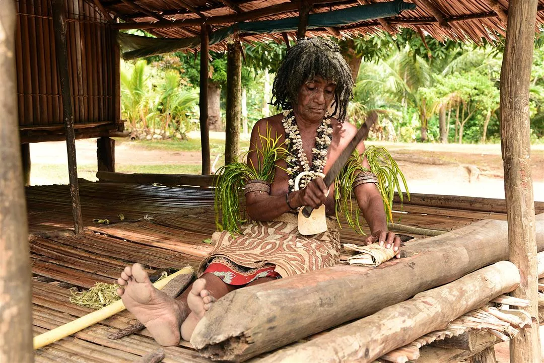 จากภาพ ชาวปาปัวนิวกินีทุบเปลือกไม้เพื่อทำผ้า และสวมใส่ผ้าเปลือกไม้ในงานเฉลิมฉลอง (ภาพจาก จงกั๋วฟาง)