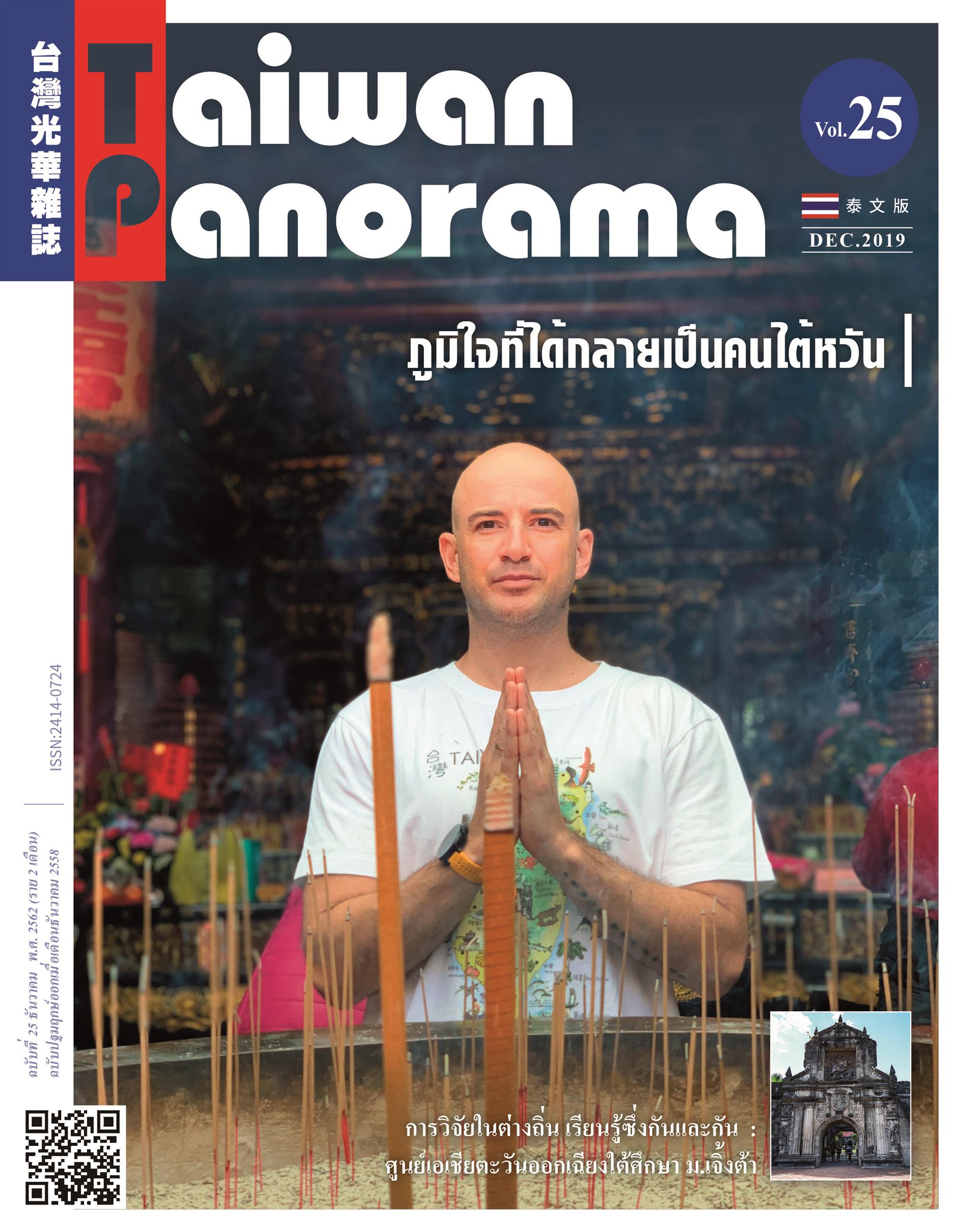 “ไต้หวันพาโนรามา” ภาษาอาเซียน ฉบับที่ 25 (ประจำเดือนธันวาคม 2562) นำเสนอภายใต้หัวข้อ “ภูมิใจที่ได้กลายเป็นคนไต้หวัน” กับ 4 บทความที่เจาะลึกวงการบันเทิง ดนตรี ศิลปะ และการแพทย์ของไต้หวัน จากมุมมองของผู้เชี่ยวชาญต่างชาติซึ่งได้โอนสัญชาติมาเป็นชาวไต้หวัน ได้แก่ “ท่องไปทั่วไต้หวัน ถ่ายทอดพลังงานบวก Rifat Karlova ผู้มาจากตุรกี”, “ฟอร์โมซาคือบ้านของฉัน จังหวะ Scherzo ของ Rolf-Peter Wille”,