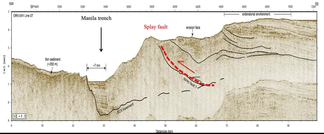 ทุกวันนี้ โครงการความร่วมมือ VOTE ซึ่งทีมงานของอาจารย์สวี่ซู่คุนได้ใช้การวิเคราะห์เสียง “โซนาร์” ที่สะท้อนกลับมาพบว่า วัตถุที่สะสมอยู่ใต้ทะเลมีการกดเบียดกันอย่างชัดเจน กระทั่งเกิดการแตกหักขึ้น แสดงให้เห็นเป็นนัยว่า เขตมุดตัวมะนิลาเคยเกิดการเบียดกันระหว่างแผ่นเปลือกโลกจากเหตุแผ่นดินไหวครั้งใหญ่หลายครั้ง