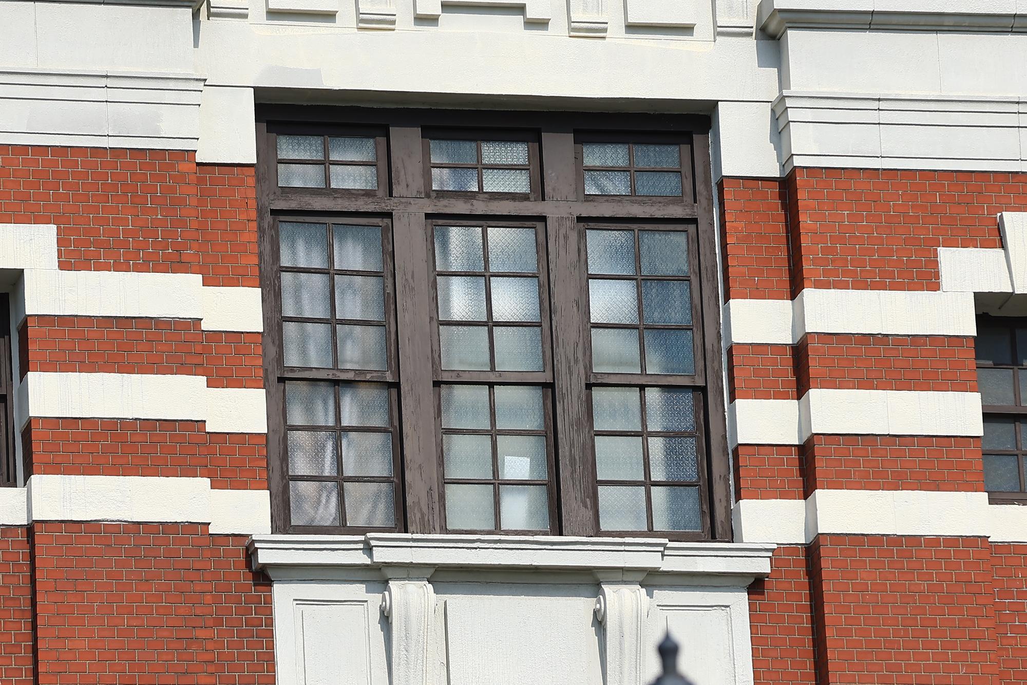 “กระเบื้องเซรามิกที่เห็นกันในปัจจุบัน เป็นผลผลิตที่เกิดขึ้นจากการทำให้อิฐแดงมีความบางลดลง” อาจารย์เคนจิฯ เห็นว่า หากจะค้นคว้าเรื่องราวของกระเบื้องเซรามิกที่มีใช้อยู่ในปัจจุบัน ก็ต้องย้อนกลับไปดูเรื่องราวของอาคารอิฐแดงในสมัยก่อน อาคารอิฐแดงแบบญี่ปุ่นเริ่มได้รับความนิยมเป็นอย่างมากในช่วงประมาณปีแรกของยุคเมจิ (ค.ศ. 1868) ซึ่งกระแสนิยมนี้ก็ติดตามมาถึงไต้หวันโดยการนำเข้ามาของเหล่าสถาปนิกจากญี่ปุ่น ในช่วงต้นศตวรรษที่ 20 อาคารของหน่วยงานรัฐบาลในไต้หวันจำนวนมาก ต่างก็เป็นอาคารอิฐแดงทั้งสิ้น แต่อาจารย์เคนจิฯ บอกให้เราพิจารณาอย่างละเอียดว่า อาคารสำนักงานบริษัทสุราและยาสูบไต้หวันในปัจจุบัน (เดิมคือ กองสินค้าผูกขาดประจำที่ทำการข้าหลวงใหญ่ประจำไต้หวัน (ค.ศ. 1913) คริสตจักรเพรสไบทีเรียน จี้หนาน (ค.ศ. 1916) ต่างก็ถือเป็นตัวอย่างสำคัญของอาคารอิฐแดง ซึ่งเขาอธิบายเพิ่มเติมว่า ในอดีต เพื่อตกแต่งภายนอกของตัวอาคารให้ดูสวยงาม คนงานก่อสร้างมักจะเลือกอิฐแดงที่มีคุณภาพดีกว่า (ผิวเรียบลื่นและเงางาม) มาใช้ในการก่อสร้างผนังของอาคาร โดยในสมัยนั้น การก่อสร้างจะใช้วิธีการก่ออิฐถือปูน แต่หากพิจารณาอย่างละเอียดจะพบว่า ในการก่อสร้างกำแพงด้านนอกของอาคารสถานีรถไฟไทจง (ค.ศ. 1917) และทำเนียบประธานาธิบดี (เดิมคือที่ทำการข้าหลวงใหญ่ประจำไต้หวัน ค.ศ. 1919) ต่างก็ใช้วิธีการก่ออิฐถือปูนตามแบบเดิม ก่อนจะมีการปูด้วยแผ่นกระเบื้องสีแดงไว้ด้านนอกสุด แสดงให้เห็นถึงพัฒนาการของเทคนิคในการก่อสร้างว่า เมื่อตัวอิฐแดงมีความบางมากขึ้น วิธีการก่อสร้างก็ถูกเปลี่ยนมาใช้วิธีติดเอาไว้ที่ผนังด้านนอกแทน
