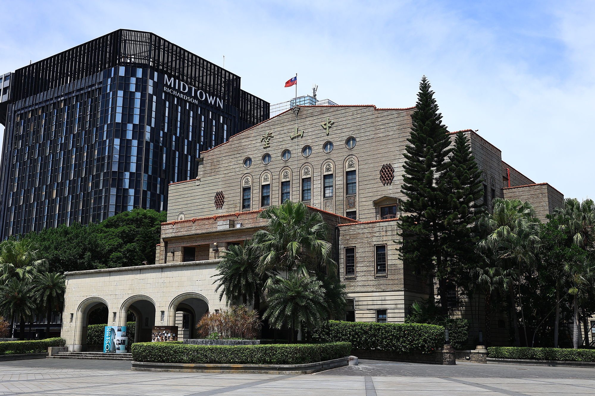 หอจงซานถังไทเป สร้างขึ้นในปี ค.ศ. 1936 เดิมคือ หอประชุมไทเป ผนังด้านนอกถูกประดับด้วยแผ่นกระเบื้อง Tapestry สีเทาเขียว ปัจจุบันถือเป็นโบราณสถานระดับประเทศ