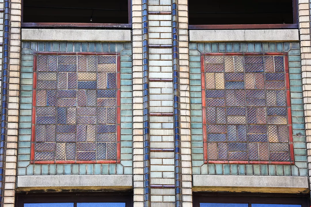 กระเบื้องที่ถูกประดับไว้ด้านนอกของตัวอาคาร ทำให้เกิดเป็นรูปลักษณ์ของอาคารแต่ละแห่ง