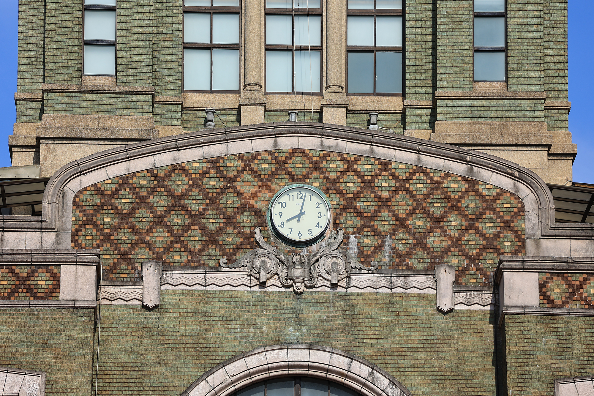 อาคารอิฐแดงที่สร้างขึ้นในสมัยเมจิและได้รับการยกย่องว่าเป็นสัญลักษณ์ของความทันสมัย พังทลายลงเป็นจำนวนมากจากเหตุแผ่นดินไหวครั้งใหญ่ที่เกิดขึ้นในแถบคันโตในปี ค.ศ. 1923 ส่งผลให้เกิดการปรับเปลี่ยนวิธีการก่อสร้างอาคาร โดยหันมาใช้โครงสร้างเหล็กหรือคอนกรีตเสริมเหล็ก (R.C.) “แต่ข้อเสียของอาคารที่เป็นคอนกรีตเสริมเหล็ก คือ ผนังด้านนอกจะดูดซึมน้ำ ทำให้ต้องได้รับการดูแลอย่างดี เหล่าสถาปนิกจึงนึกถึงกระเบื้องเคลือบขึ้นมาทันที” อาจารย์เคนจิฯ กล่าว หลังผ่านเหตุแผ่นดินไหวครั้งใหญ่ที่คันโต ผู้คนต่างเห็นว่าอาคารสีแดงถือเป็นสีของอดีตที่ผ่านพ้นไปแล้ว ทำให้เกิดการผลิตกระเบื้องเคลือบที่มีสีสันต่าง ๆ มากมาย ทั้งสีกาแฟ สีเหลือง สีขาว หรือแม้แต่สีเขียวและเขียวอ่อน ในขณะเดียวกัน เทคนิคในการผลิตก็มีการพัฒนามากขึ้นจนเกิดเป็นกระเบื้อง Scratch กระเบื้องผิวหยาบ กระเบื้องเส้นหยาบ (ในไต้หวันเรียกว่ากระเบื้อง 13 ร่อง) กระเบื้อง Tapestry และ Terra Cotta เป็นต้น