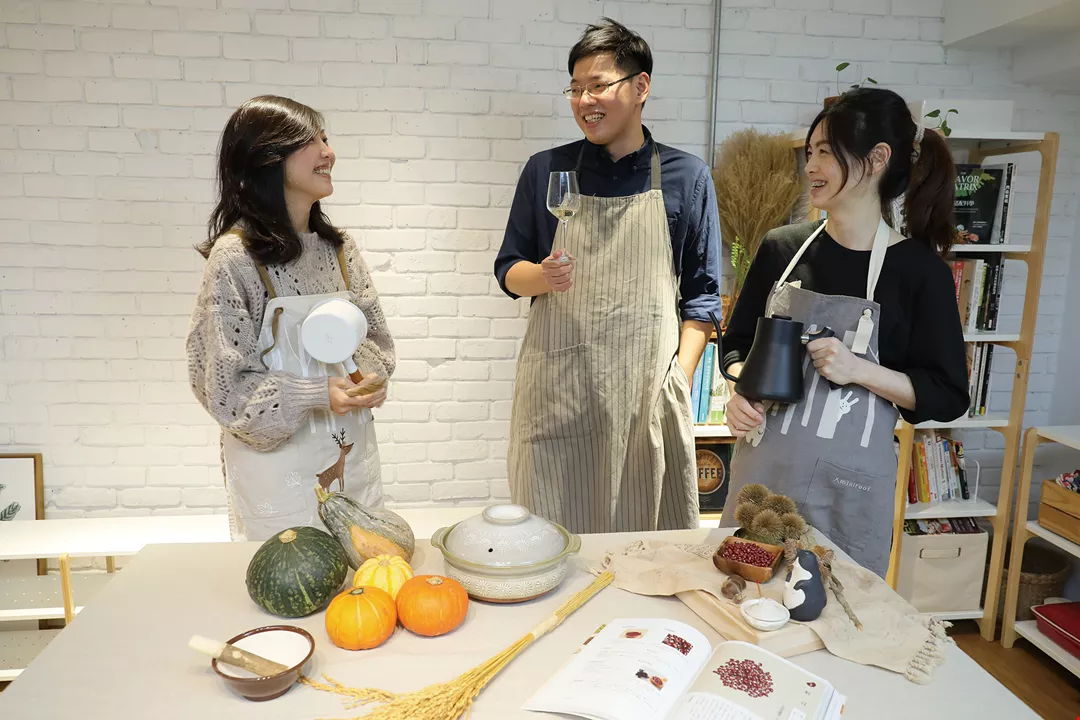 อู๋ฮุ่ยถิง (ขวา), จางอวี้เหว่ย (กลาง) และเฉิงอี๋เต๋อ (ซ้าย) ร่วมกันสร้างแบรนด์ธุรกิจ Cooking & Living เพื่อแนะนำคอร์สเรียนที่เสริมสร้างประสาทสัมผัสทั้ง 5 และถ่ายทอดแนวความคิดแห่ง “การดำเนินชีวิตอย่างมีสติ”