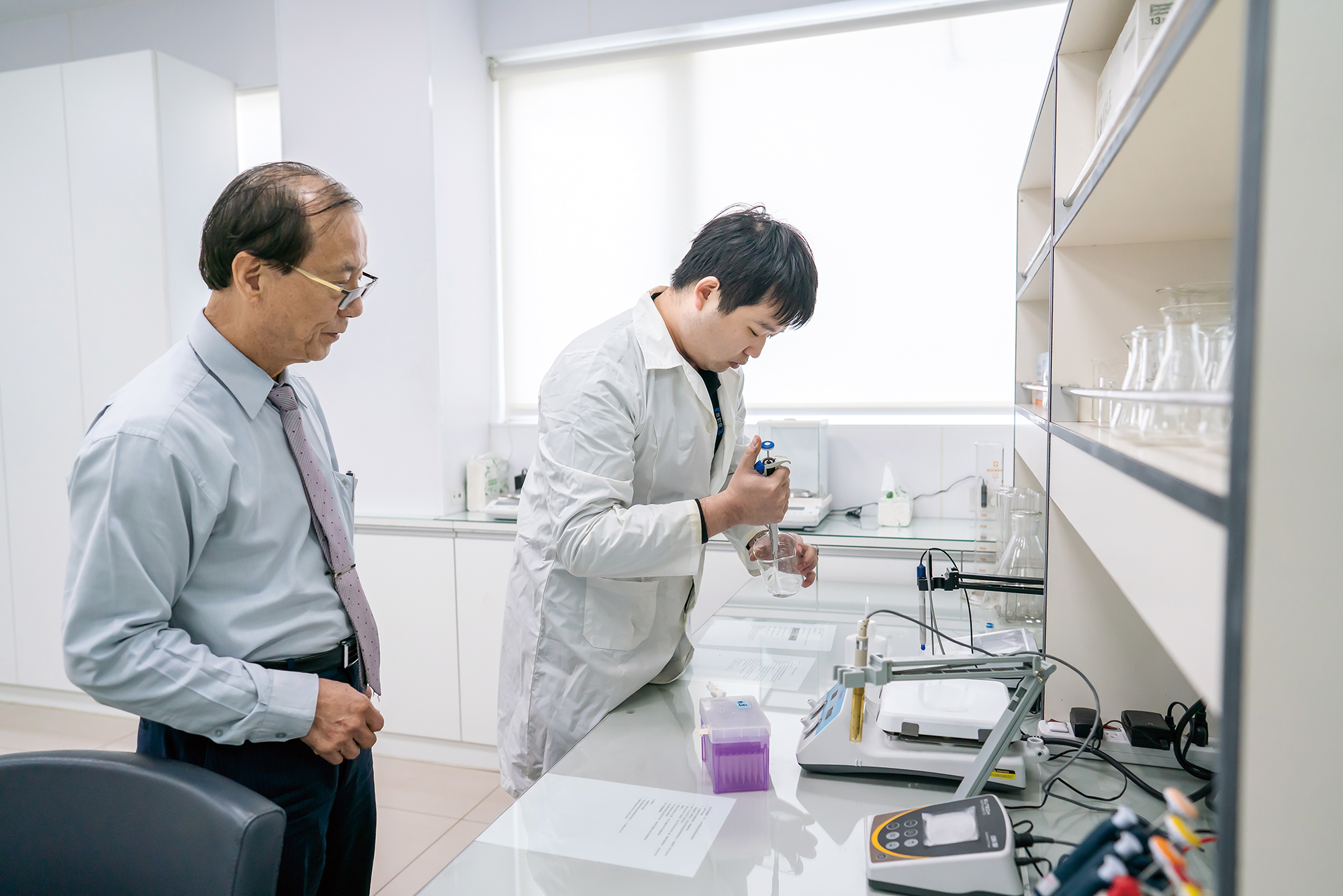 หยางชิวจง (ขวา) บิดาของ หยางหลี่เซวียน รับผิดชอบงานด้านเทคนิค และการตลาดพร้อมๆ กัน เพื่อส่งเสริมให้เทคนิคการจัดการด้วยเอนไซม์ เป็นที่รู้จักในระดับสากล