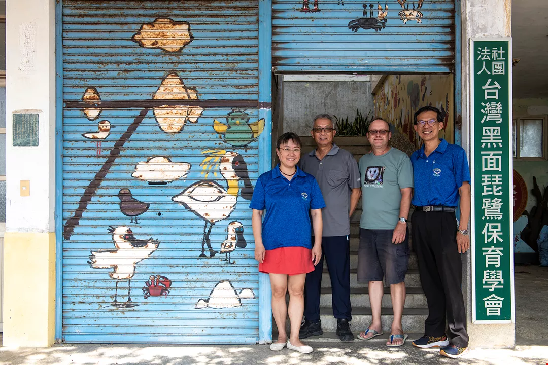 สิ่งแวดล้อม ในภาพคือสมาชิกของสมาคมอนุรักษ์นกปากช้อนดำแห่งไต้หวัน โดยมีไต้จื่อเหยาอยู่ทางขวาสุด