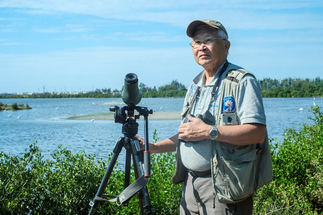 กัวตงฮุย กรรมการบริหารสมาคมอนุรักษ์นกไถหนาน ทุ่มเทให้กับการอนุรักษ์นกปากช้อนหน้าดำมานานหลายปีแล้ว