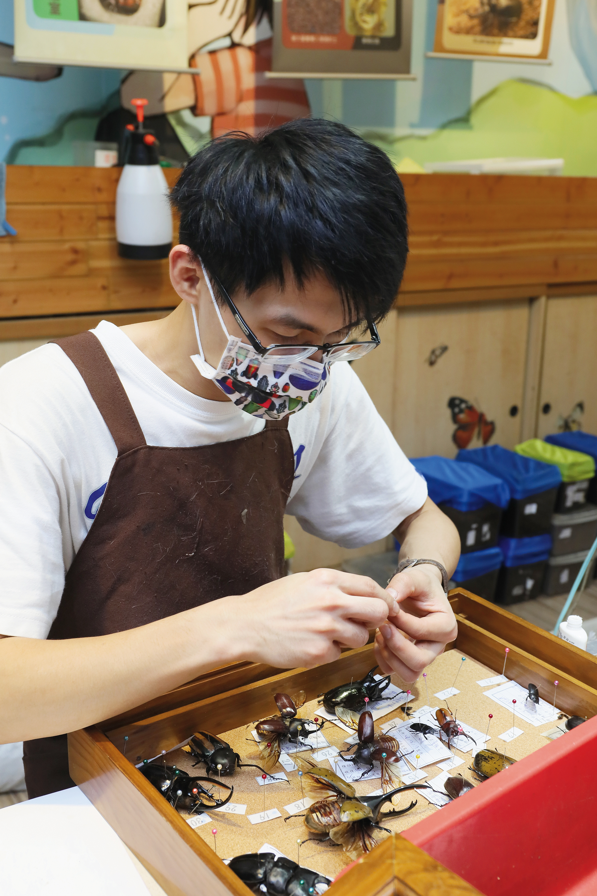 飼養昆蟲時,主要注意事項有溫度、食物新鮮度、容器大小、干擾程度,柯心平生動地說:「甲蟲只要一兩個月換一次食物就好,每天換會嚇死牠,不小心驚動到牠,牠會以為自己要被吃掉了!」而當幼蟲被養得越大,成蟲就會越大。原則看似簡單,但擁有長年的飼養經驗與知識,才能掌握關鍵。