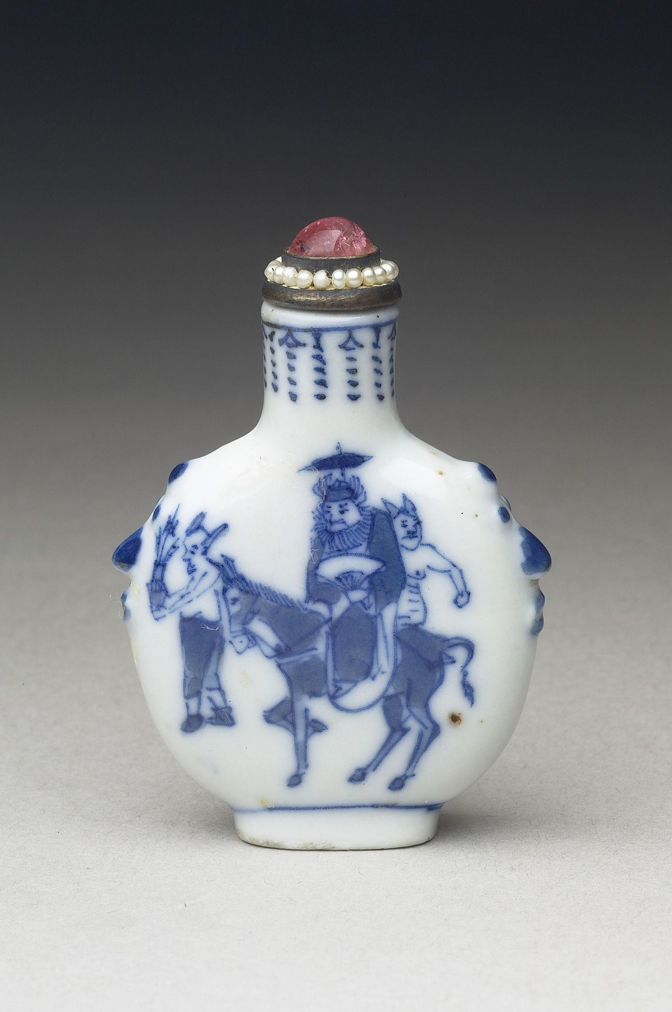 清 十九世紀 青花瓷畫鍾馗嫁妹鼻煙壺