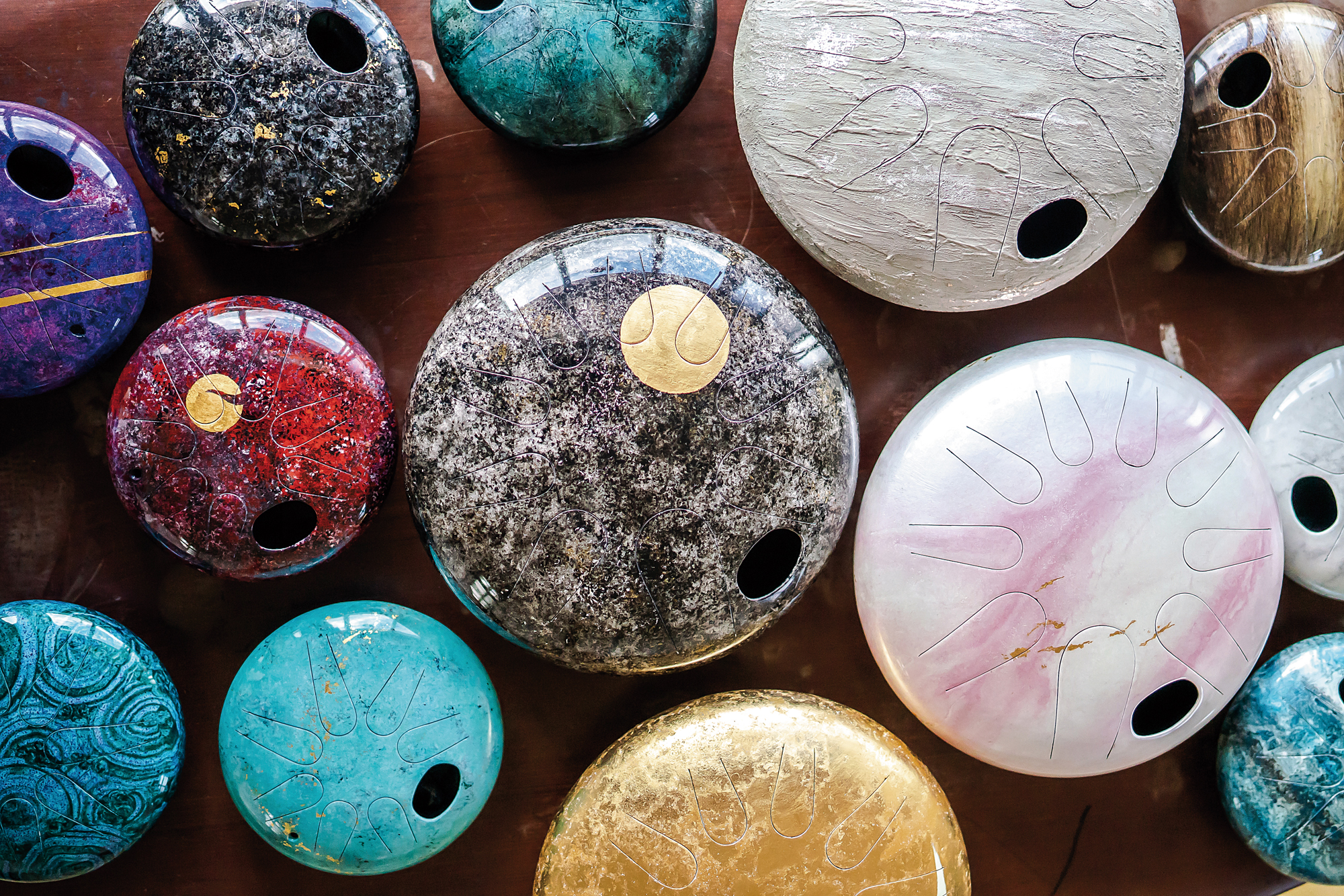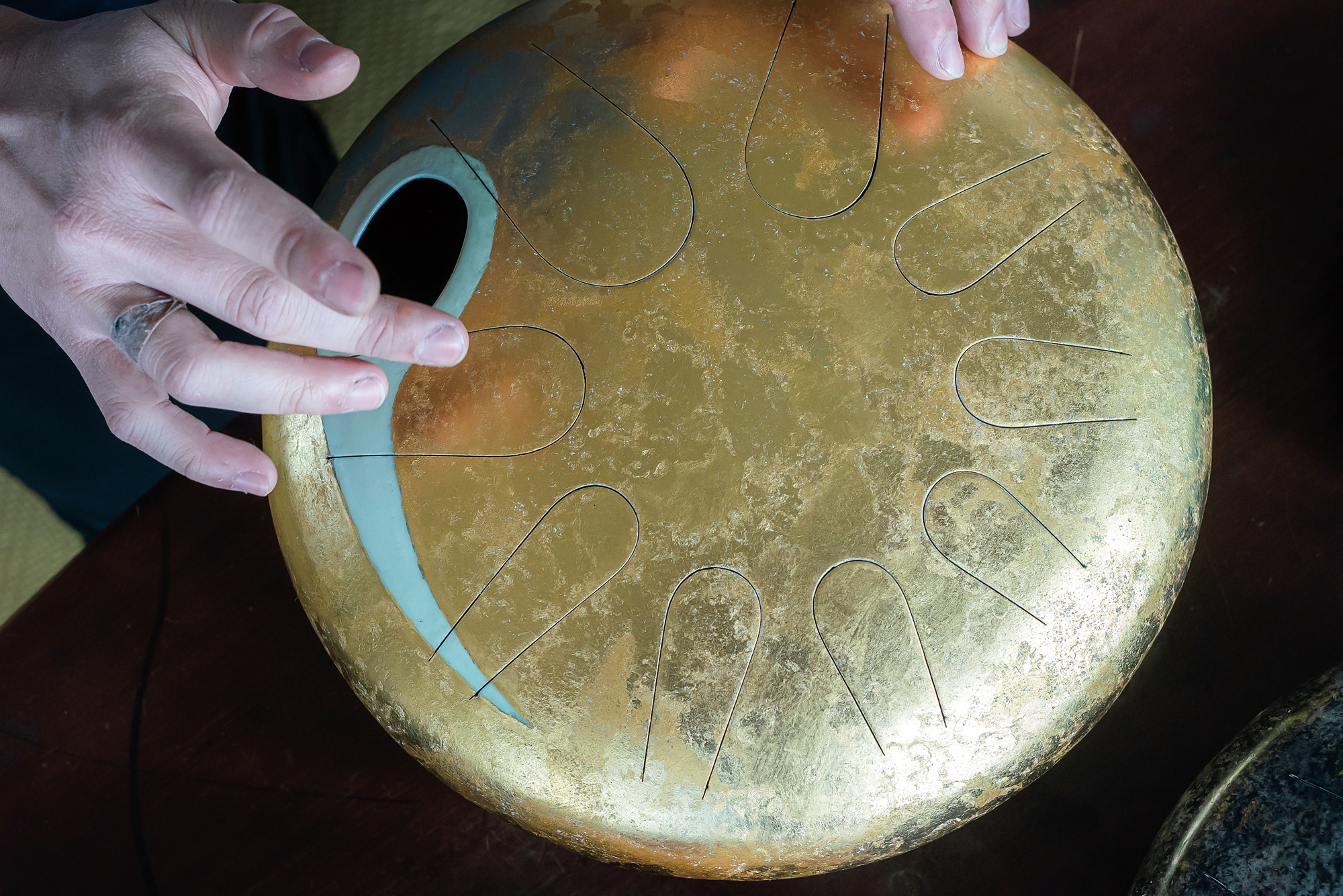 「所有靈感都來了。」潘子村這樣說。即使沒有人從旁指導,全憑己力摸著石頭過河,但手作所帶來的愉悅,依舊讓他感到躍躍欲試。尤其天鼓製程繁瑣,變化性高,如何兼顧實用、美感與品質,關乎到素材的選擇、外觀造型,還有舌片的排列、音符的選擇等因素,雖然其中勢必經過無數次的失敗與重來,但也提供了創作者許多寬廣可供創意揮灑的空間。