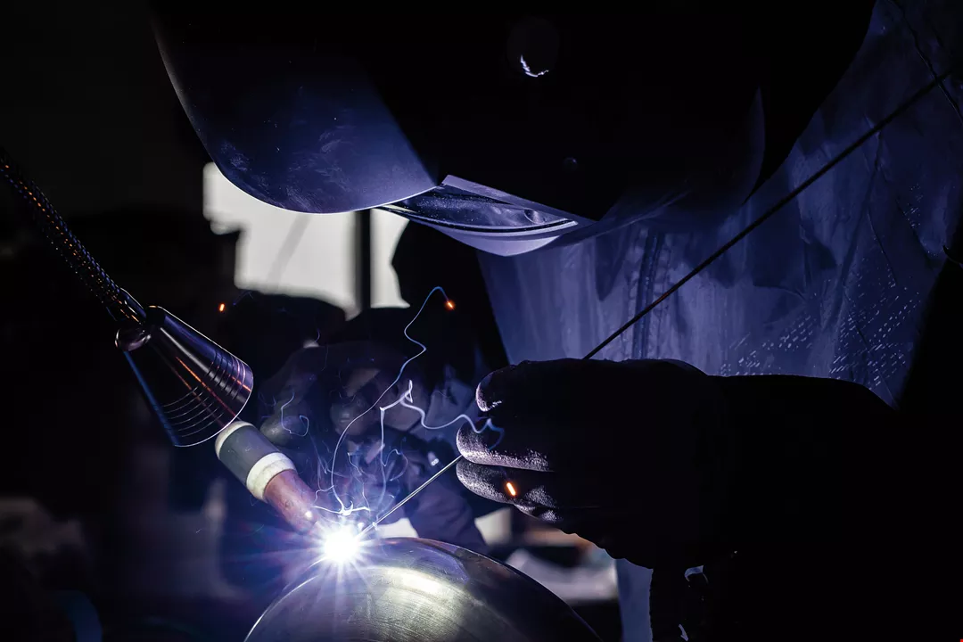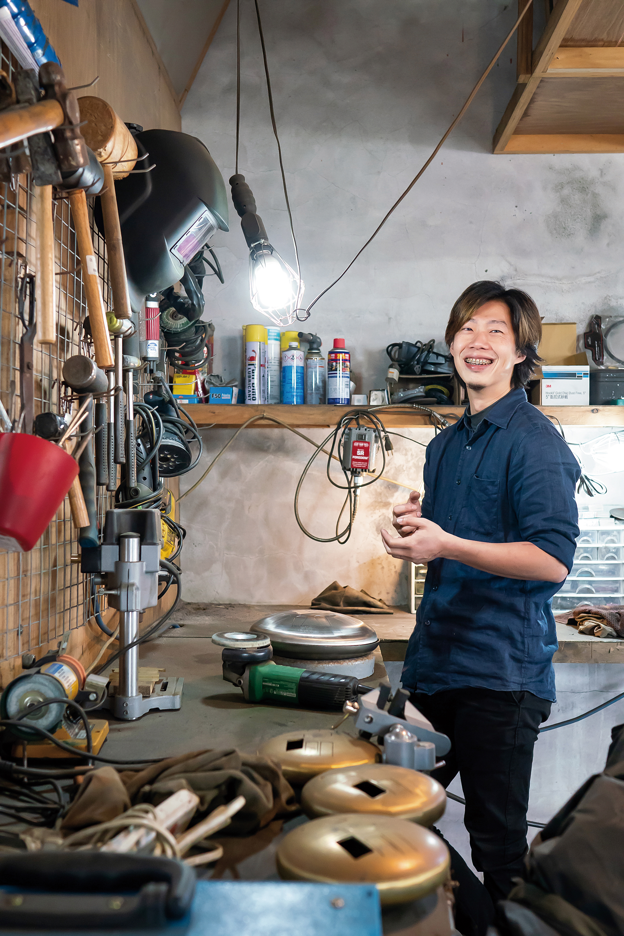 從初期,他主要使用老舊瓦斯桶來加工創作,但因表面鏽蝕嚴重,雖能呈顯出另類的美感,在品質上卻無法耐久。希望客人買回去就能「一勞永逸」的潘子村,陸續試過黃銅、紅銅、青銅、304不鏽鋼等不同材料,最後拍板定案,採用最高等級的醫療級不鏽鋼。