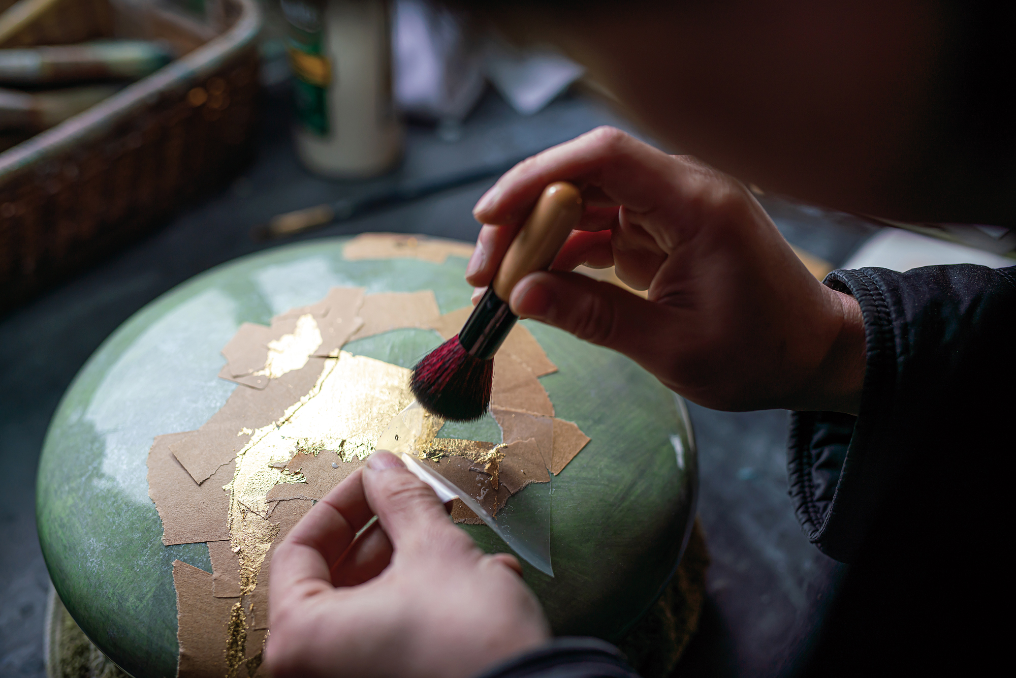 向來不喜束縛,甚至過去為此困擾的潘子村,終於在這份工作中找到安身立命之處──雖然現在,因品牌茁壯,邁向與工廠合作量產半成品,每一顆天鼓仍有省不了的手工工序。在創作當下,摒棄所有雜念的極致專注,為他帶來有如「動態靜心」的平靜與療癒,推動他持續不輟至今,「過去從來沒有一個工作能夠持續做到五個月,但天鼓卻讓我不知不覺地投入,到今天已經滿七年。」潘子村說。