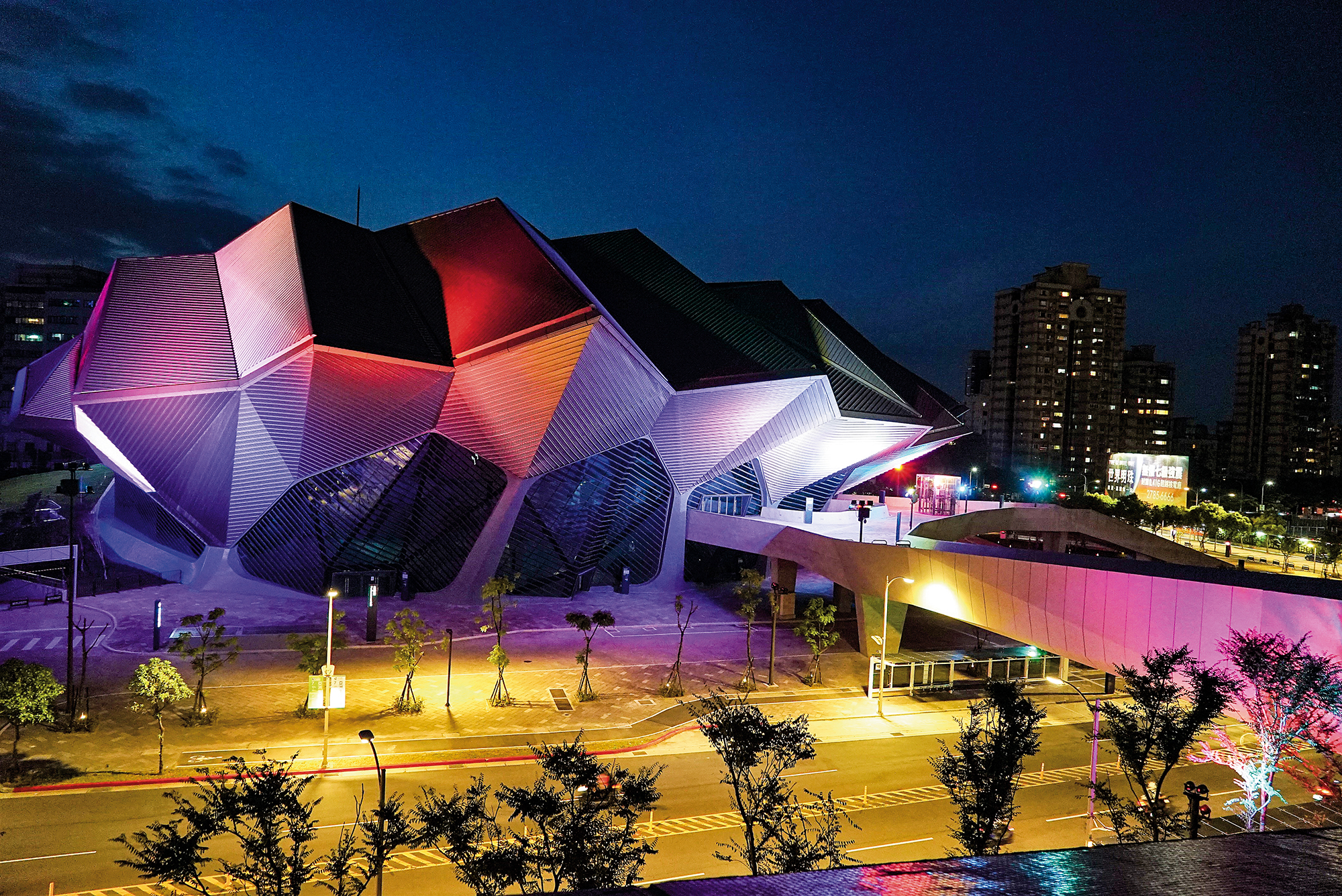 走出昆陽捷運站,原本空曠的地平面,傲然矗立起三座造型新穎的建築物,這就是「北流」。首先吸引住目光的,是在陽光下熠熠發光,有若山脈般連綿的屋脊,曲折的線條,在不同的面向,有相異的風情。這棟圓型建築,是表演廳;對向六層樓高,像一方碩大文鎮的正方型建築是文化館;以寶石切割面,寓意多面向內涵的長方型建築,是產業區。三大建物間,以空橋串連,形成孕育流行音樂與文化產業的環形聚落。「很多場館都是以多功能目的來建構,流行音樂中心,卻是以單一目標來規劃設計,可以說是世界首創。」三年來肩負起軟硬體統整與規劃重任的籌備處主任丁度嵐說道。