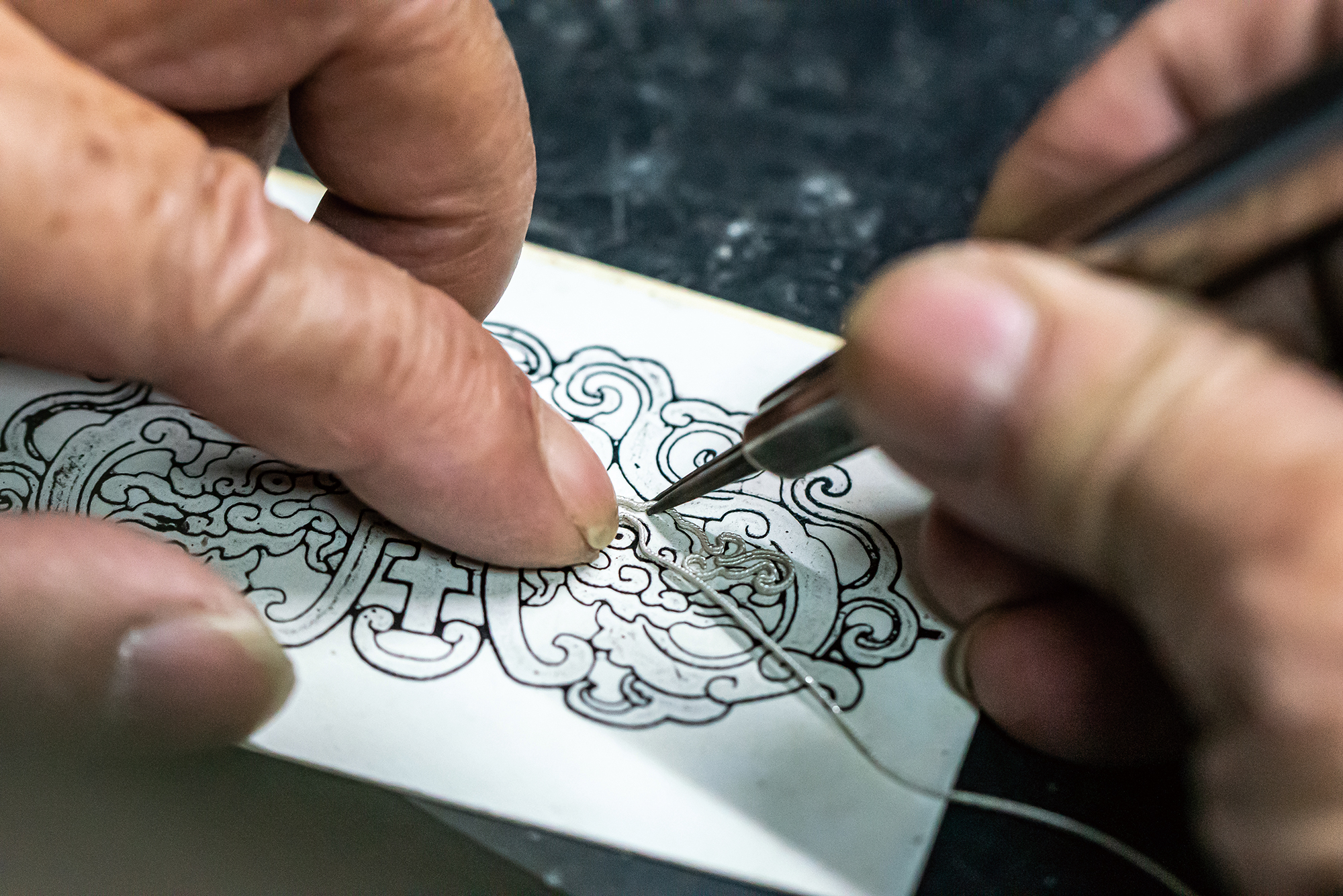 Mỗi chiếc mũ tinh tế đều do ông Quách Xuân Phúc không ngừng lặp lại các bước uốn nắn, hàn nối dưới kính lúp, là tác phẩm ông phải mất mấy tháng ròng rã mới có thể hoàn thành.