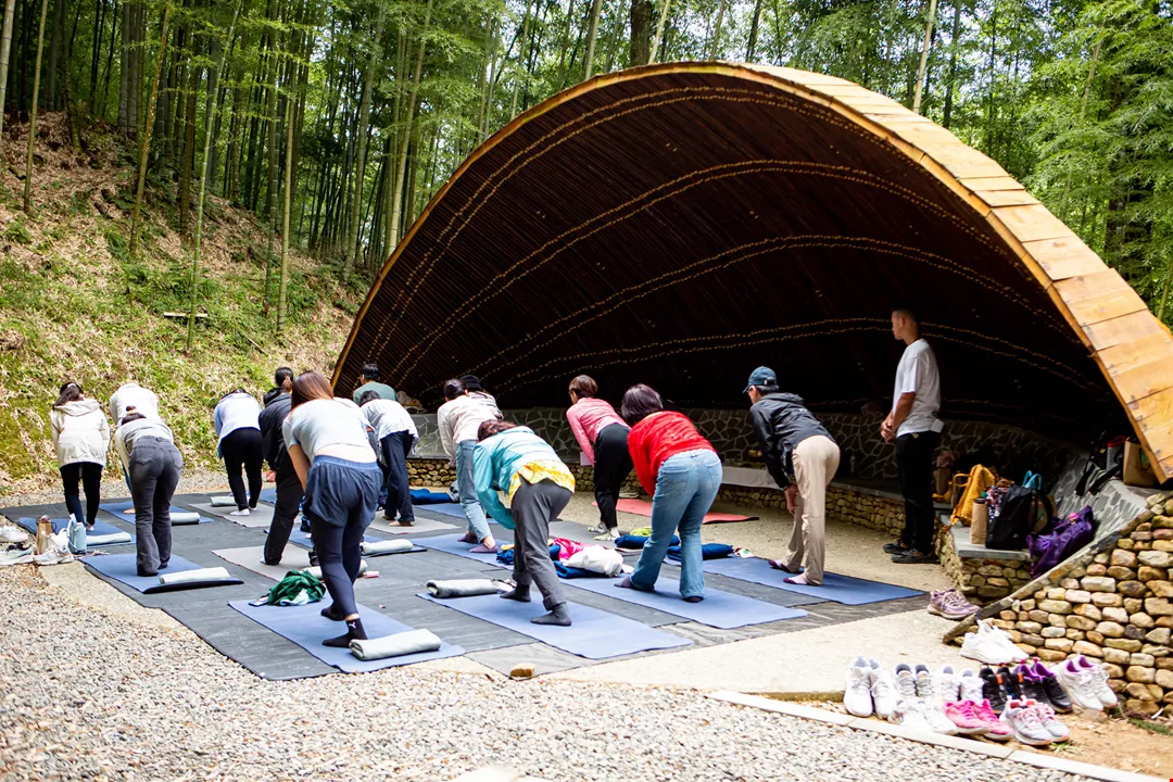 “Ngồi tĩnh lặng” là trạm đầu tiên của Công viên rừng tre sáng tạo Thạch Bích, dẫn dắt những du khách nhuốm đầy bụi trần khi tới đây có thể trải nghiệm sự đơn thuần và tĩnh lặng của rừng trúc. (Ảnh: Công ty thiết kế D.Z. Architects & Associates cung cấp)