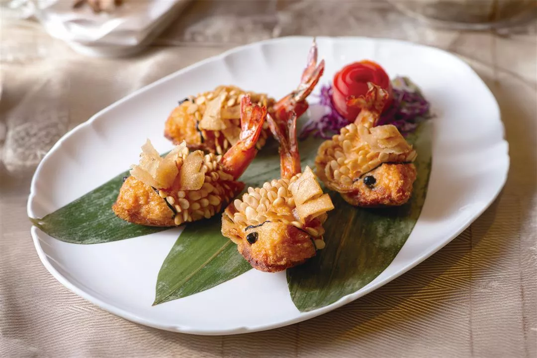 Món ăn mang phong vị cổ xưa của Đài Loan được chế biến vô cùng công phu. Đầu tiên trộn hỗn hộp chả tôm và chả mực rồi nặn thành hình thân cá, sau đó, chèn từng hạt dưa vào để tượng trưng cho vảy cá, rồi cho vào chảo chiên. Đây là một món ăn vô cùng tinh tế và công phu. (Ảnh: Tập đoàn ẩm thực quốc tế Shin Yeh cung cấp)