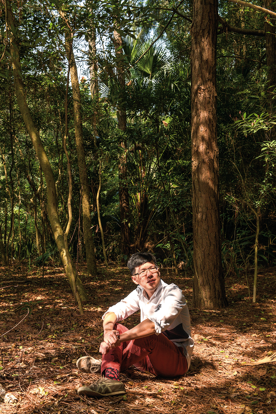 Trước khi bước vào The Forest BIG, đoàn sẽ đưa mọi người đến trước tượng Quan Thế Âm Bồ Tát để hành lễ với mong muốn thông qua nghi thức này truyền thông điệp cho rừng núi: Chúng tôi đã đến, đồng thời để tâm hồn được lắng đọng, thả chân bước đi chậm hơn. Ở đây có lối mòn nhỏ hẹp chỉ 1 người có thể bước đi mà thôi, lối mòn tràn ngập tiếng côn trùng, chim chóc, đất dưới chân mềm, xốp cho thấy dưới lớp đất này từng có chuột chũi Đài Loan đi qua. Tại đây thỉnh thoảng ta lại bắt gặp mạng nhện giăng ngang. Giám đốc Hà Thừa Dục vừa nhẹ nhàng di dời mạng nhện vừa thì thầm xin lỗi, ông nói: “Nếu có thể không quấy rầy thì đừng gây phiền phức, đây là logic của The Forest BIG”. Sau lộ trình chỉ có 5 phút ngắn ngủi, cảnh vật trong khu rừng đã đổi khác hoàn toàn, các loài thực vật ở vùng ven biển lại có mặt trong vùng núi này. Thì ra vào khoảng 300.000 năm trước, nơi đây đã từng là bờ biển, do đó thổ nhưỡng ở khu này mang tính chất của cồn cát và đây cũng là 1 phát hiện ngạc nhiên thú vị khi công viên tiến hành nghiên cứu sinh thái khu vực này.