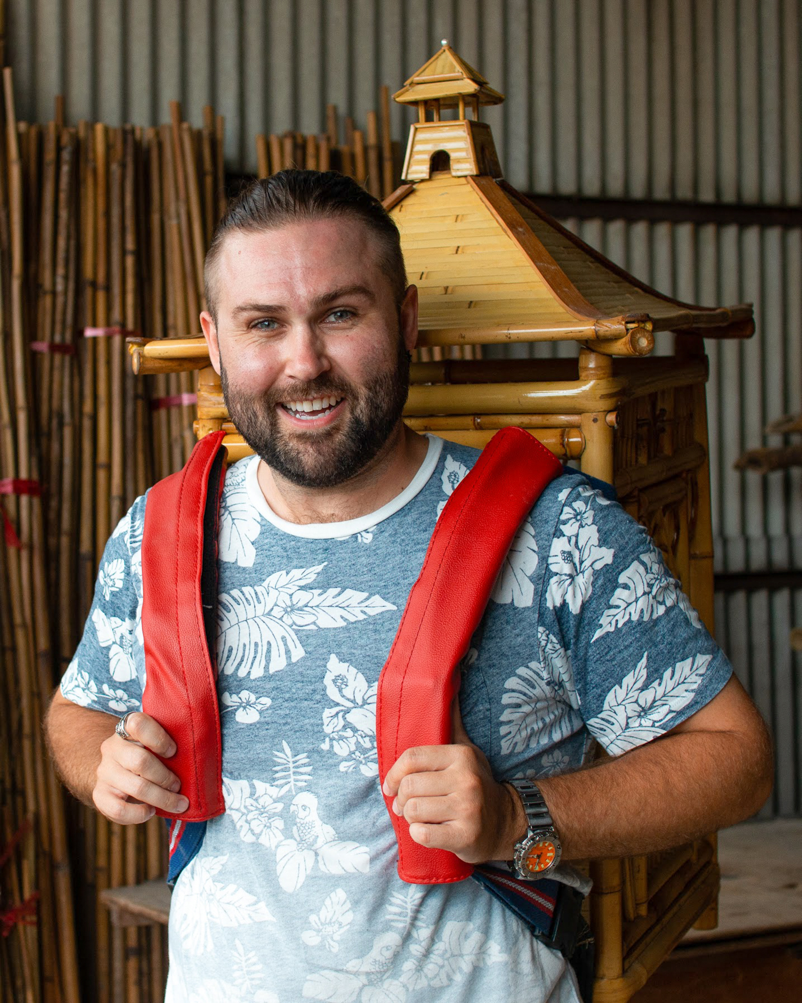 Logan Beck đích thân trải nghiệm việc khiêng kiệu, cảm nhận sự khó nhọc và nhiệt huyết của những người khiêng kiệu. (Ảnh: Logan Beck cung cấp).