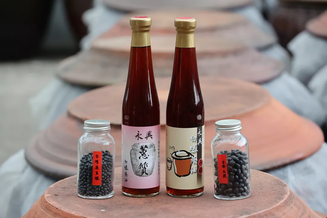 Xưởng nước tương Yong Xing chọn giống đậu đen Tainan No.5 và đậu đen nhỏ Hằng Xuân để làm nguyên liệu chế biến, nước tương hương vị đậm đà.
