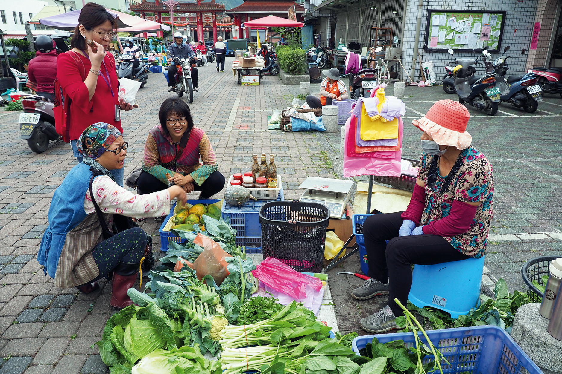 Để tận mắt chứng kiến sự phong phú đa dạng của nguyên liệu thực phẩm Đài Đông, vào sáng sớm chúng tôi được chị Kiều đưa thẳng tới thăm chợ Quan Sơn (Guan-shan) và chợ Trì Thượng. Chiếc xe chất đầy nguyên liệu thực phẩm, trở về nơi ở của chị Kiều nằm cạnh đầm Đại Ba (Dapo).