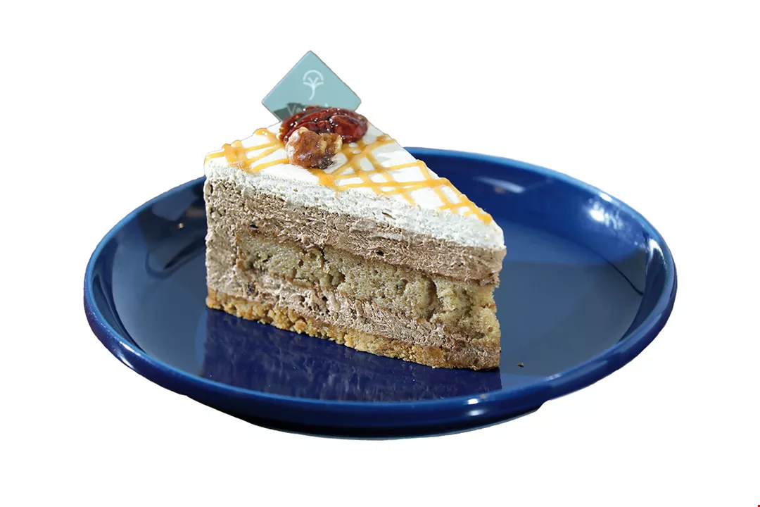 Bánh Caramel Mocha Mousse muối biển được làm từ bánh trà đen phết lên lớp mousse caramel, mềm mịn và tinh tế.