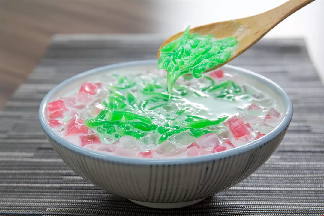 Chè chendol là món chè phổ biến tại Indonesia, cọng bột màu xanh được làm từ lá dứa và bột đậu xanh.
