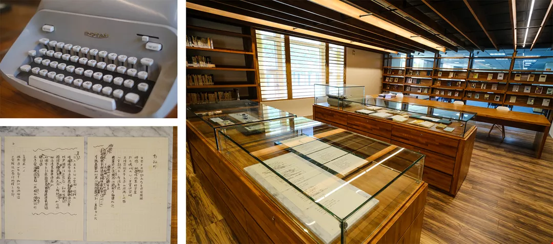 Thư phòng Dương Mục trưng bày bản chép tay, tác phẩm, sách sưu tầm của Dương Mục và máy đánh chữ ông từng dùng.
