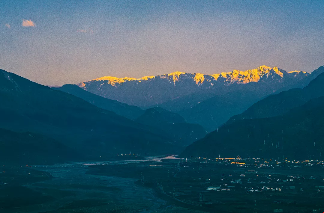 Từ hướng thung lũng suối Mugua nhìn ra xa, có thể thấy được núi phía Bắc của dãy Qilai. (Ảnh: Tsui Tsu-hsi).
