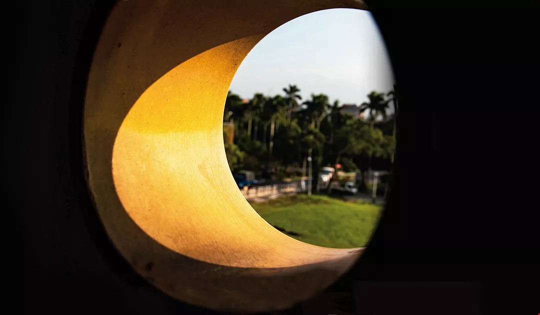 Nhà trưng bày nông nghiệp Đại học Quốc gia Đài Loan được gọi là “Nhà ống” chính là vì những viên ngói ống được khảm trên tường xi măng.