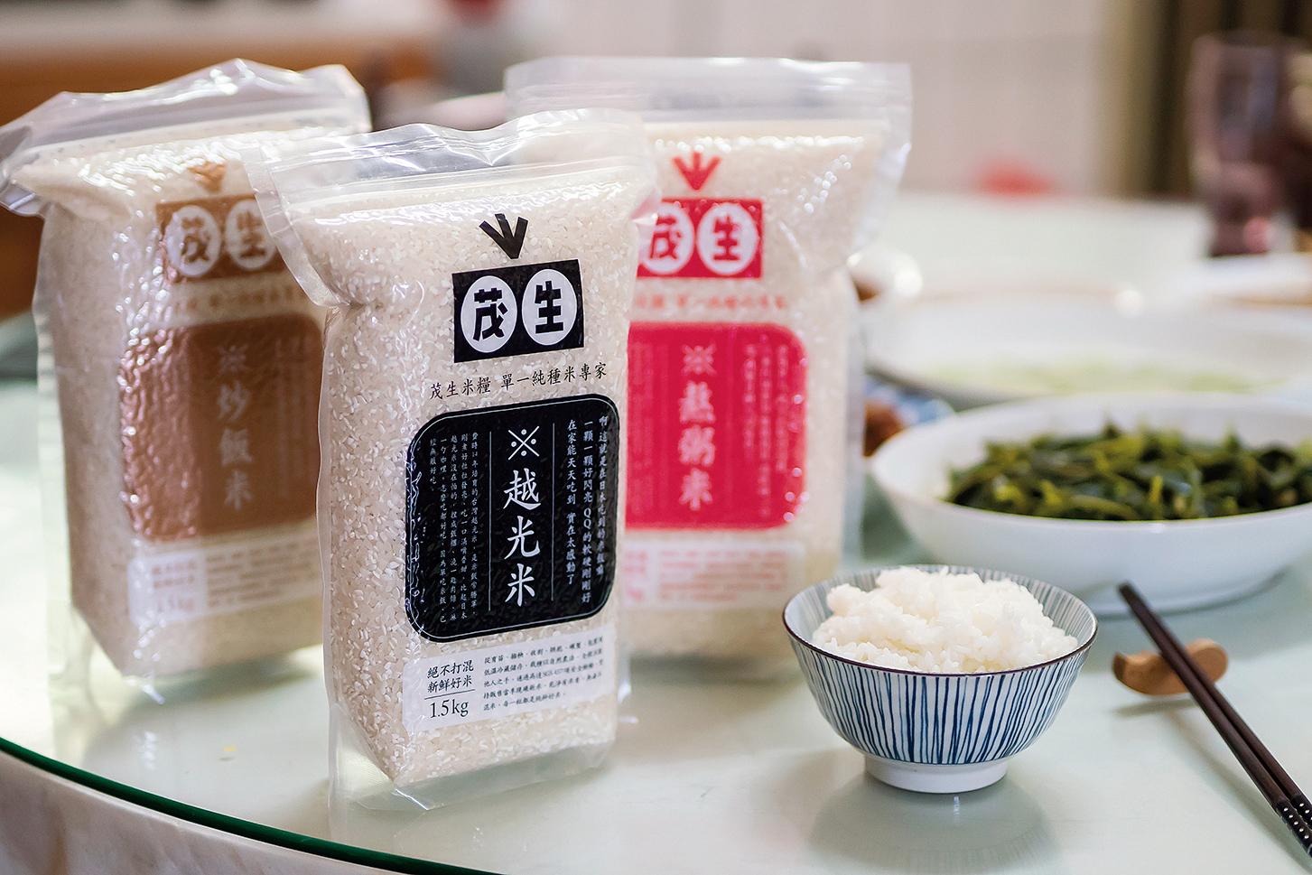 Sản phẩm của thương hiệu Mao Rice rất đơn giản, chỉ có ba loại, mỗi loại đại diện cho một giống gạo riêng biệt. Do cân nhắc người tiêu dùng không có hiểu biết sâu về các giống gạo nên anh Lâm Mậu Sanh đặc biệt kết nối mỗi giống gạo với mục đích sử dụng khác nhau. Giống gạo “Đài Nông số 77” có đặc tính mềm dẻo, hạt mẩy và bóng, đạt chất lượng ngang bằng với gạo cao cấp của Nhật Bản, có thể dùng thay thế cho “gạo Koshihikari”. Gạo “Đài Nông số 71” có hàm lượng nước cao với hiệu quả hồ hóa tốt, thích hợp cho việc chế biến những món phải mềm nhừ, được gọi là loại “gạo nấu cháo”, còn giống gạo “Đài Nông Tiên số 22” có hàm lượng amylose cao, khi nấu cho hạt cơm tơi, tách rời và có độ dai nhẹ, thích hợp để chế biến cơm chiên hoặc làm món cơm trộn rau củ, được gọi là “gạo cơm chiên”.