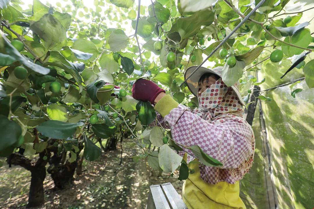 Ông Su Xin-Cheng (Tô Tín Thành) cao 1.81m, đi len lỏi một cách quen thuộc giữa những bụi cây ăn trái thấp lùn mà không chút e ngại những chiếc gai nhỏ nhọn trên thân cây, vừa ngắt chồi vừa nói: “Đây là lần thứ ba tôi tỉa bớt quả rồi”. Dưới đất đầy những quả táo xanh nhỏ bị cắt bỏ, đó là minh chứng của sự cần cù, công phu tỉa quả để đổi lấy mùa màng bội thu.