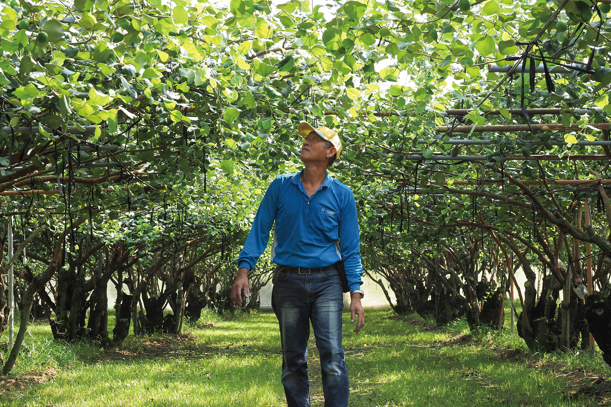 Vườn táo đã được phủ lưới bảo vệ dưới ánh nắng mùa xuân chói lọi, ấm áp vô cùng. Đoàn ký giả của tạp chí “Taiwan Panorama” đã đến thăm khu Dashe (Đại Xã), thành phố Cao Hùng – nơi đã 6 năm liên tiếp đoạt giải Quán quân trong cuộc thi “Đánh giá các vườn táo toàn Đài Loan” của Trung tâm Cải tạo nông nghiệp khu vực Cao Hùng thuộc Ủy ban Nông nghiệp, để thỉnh giáo bí quyết trồng táo xanh nặng 200 gram mỗi quả của “Vua táo” Su Xin-cheng (Tô Tín Thành) - người từng hai lần đoạt danh hiệu Quán quân trong cuộc thi này.
