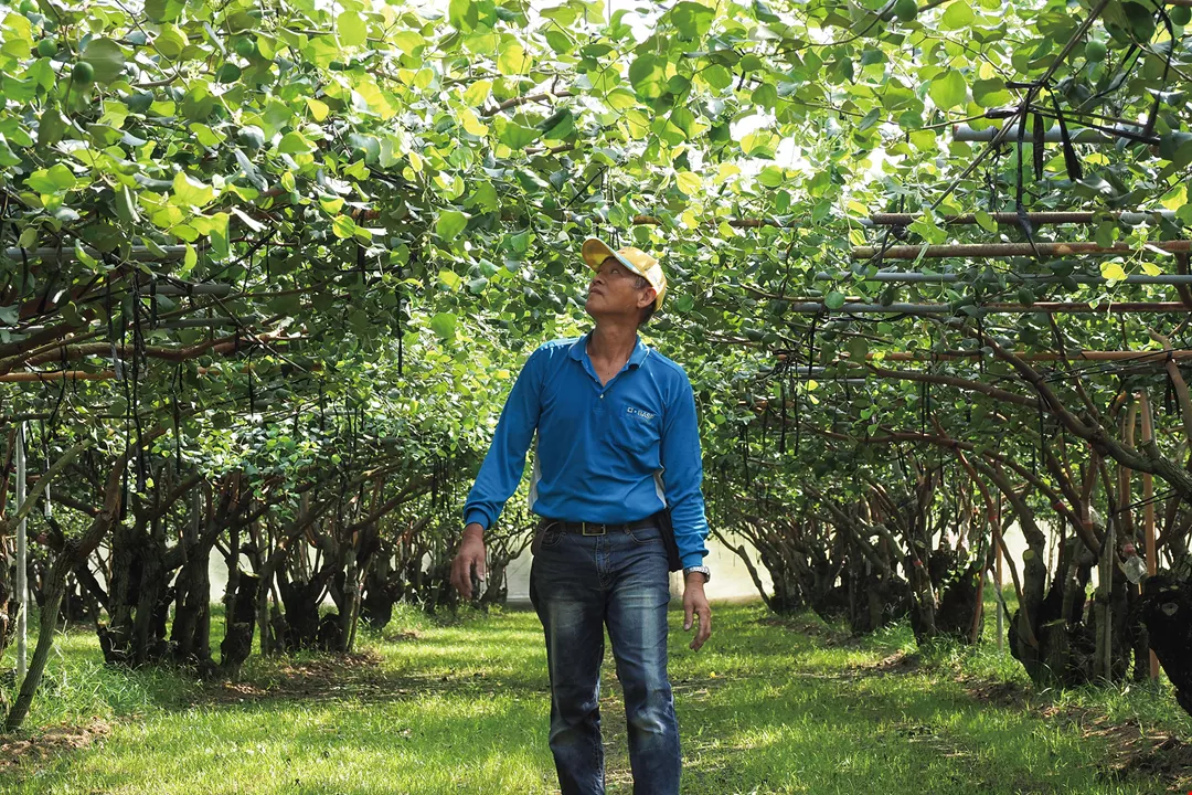 Ông Su Xin-cheng đã tự sáng tạo ra cách trồng táo bằng “giàn trồng 3D”, giúp sản lượng táo xanh tăng gấp đôi.