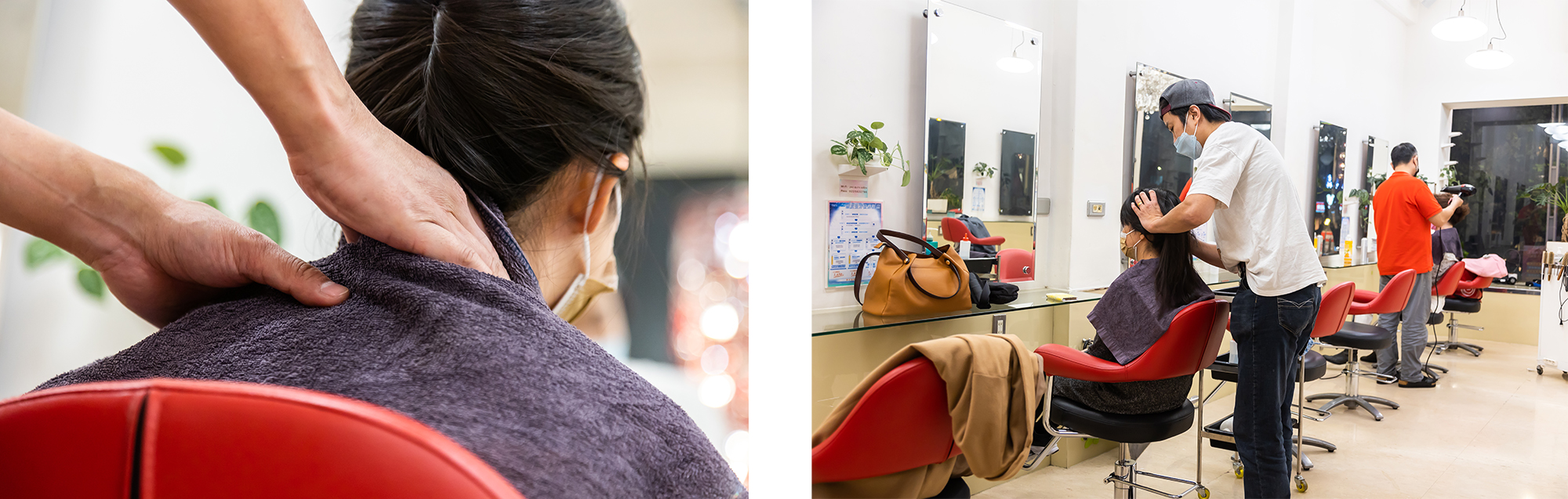 Những tiệm cắt tóc kiểu gia đình nằm trong các con hẻm nhỏ càng mang đậm tình người và chức năng xã hội. Những thợ cắt tóc lâu năm đều có tay nghề lão luyện, vì không tiện đi xa nên các bà, các mẹ thường xuyên ghé tiệm gội đầu gần nhà và lâu dần trở thành “khách ruột”. Ngồi trên chiếc ghế chuyên dụng của tiệm cắt tóc, câu chuyện trở nên cởi mở với đủ chuyện trên trời dưới bể, sau khi gội đầu không những cảm thấy đầu óc sảng khoái dễ chịu, mà còn củng cố mối quan hệ giao tiếp xã hội, được thỏa mãn cả về thể chất lẫn tinh thần. Đối với những khách hàng cao tuổi không tiện đi ra tiệm cắt tóc, còn có thể nhờ thợ cắt tóc đến nhà phục vụ, thể hiện mối liên kết tình cảm đầy ấm áp.
