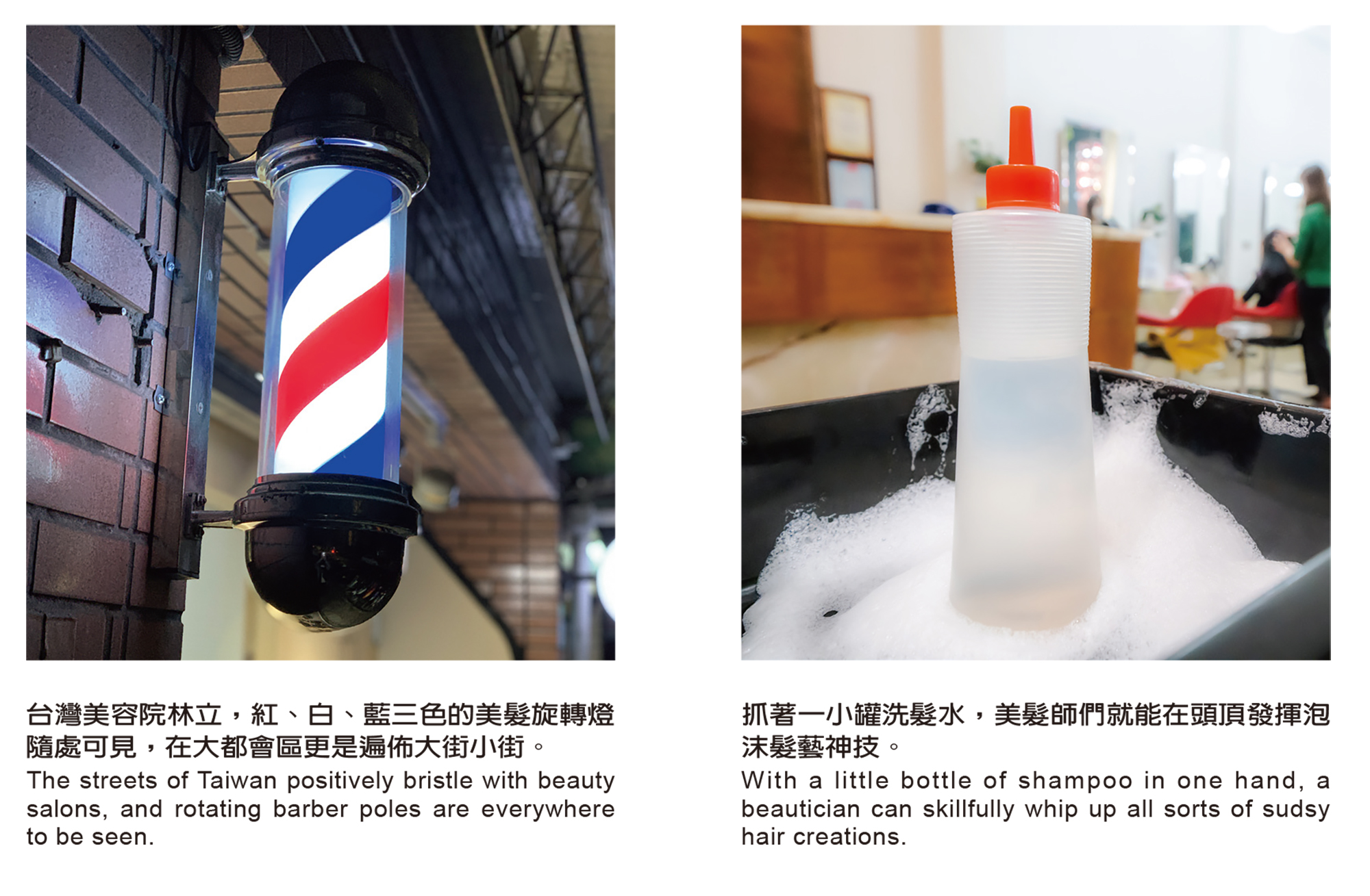 Các Salon tóc mọc lên san sát khắp Đài Loan, khắp nơi đều có thể nhìn thấy loại đèn xoay biển hiệu của các tiệm cắt tóc có ba sọc chéo màu đỏ, trắng và xanh lam.