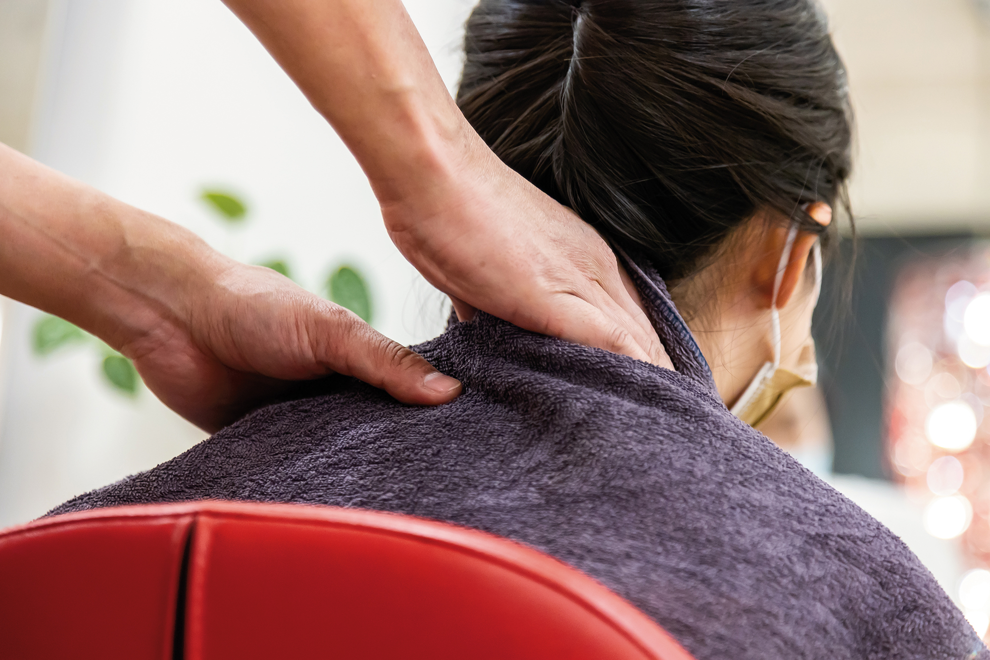 Mát xa cổ, vai, gáy không phải cứ xoa bóp tùy tiện là được, ngoài việc sử dụng đầu ngón tay, sách giáo khoa cũng có chương chuyên giới thiệu về gội đầu và mát xa, bao gồm mát xa trước khi gội đầu, các vị trí thực hiện ấn đầu ngón tay và kỹ thuật gội đầu. Ví dụ các điểm ấn ngón tay tại các vùng đầu, cổ và lưng thì huyệt Phong Trì là giúp giảm mệt mỏi cho mắt, huyệt Thiên Trụ để giải quyết vấn đề cứng gáy, nhức mỏi vai; bấm vào các huyệt nêu trên trong lúc gội đầu sẽ giúp khách hàng có cảm giác “nhẹ cả người”.