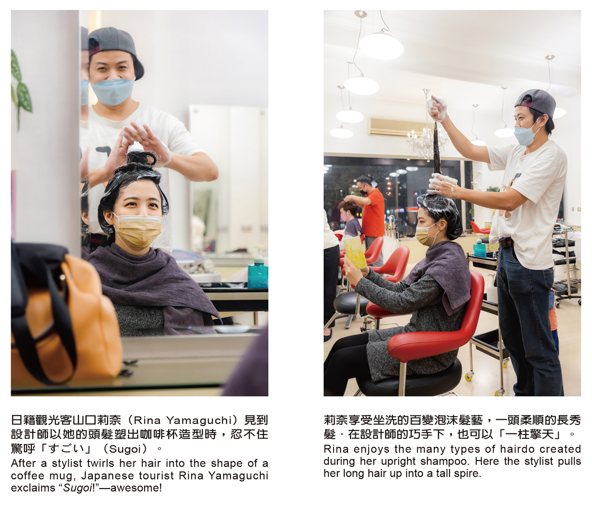 Du khách người Nhật Rina Yamaguchi đến Đài Loan để ăn mừng sinh nhật 26 tuổi, chính là vì muốn trải nghiệm theo hướng dẫn của cuốn cẩm nang giới thiệu du lịch Đài Loan. Nhà tạo mẫu tóc đã nhanh chóng tạo bọt trên tóc mái của cô, sau đó vừa gội đầu vừa mát xa đầu cho cô, có lẽ vì quá dễ chịu, cơ thể được thư giãn nên Rina thậm chí còn ngủ gật.