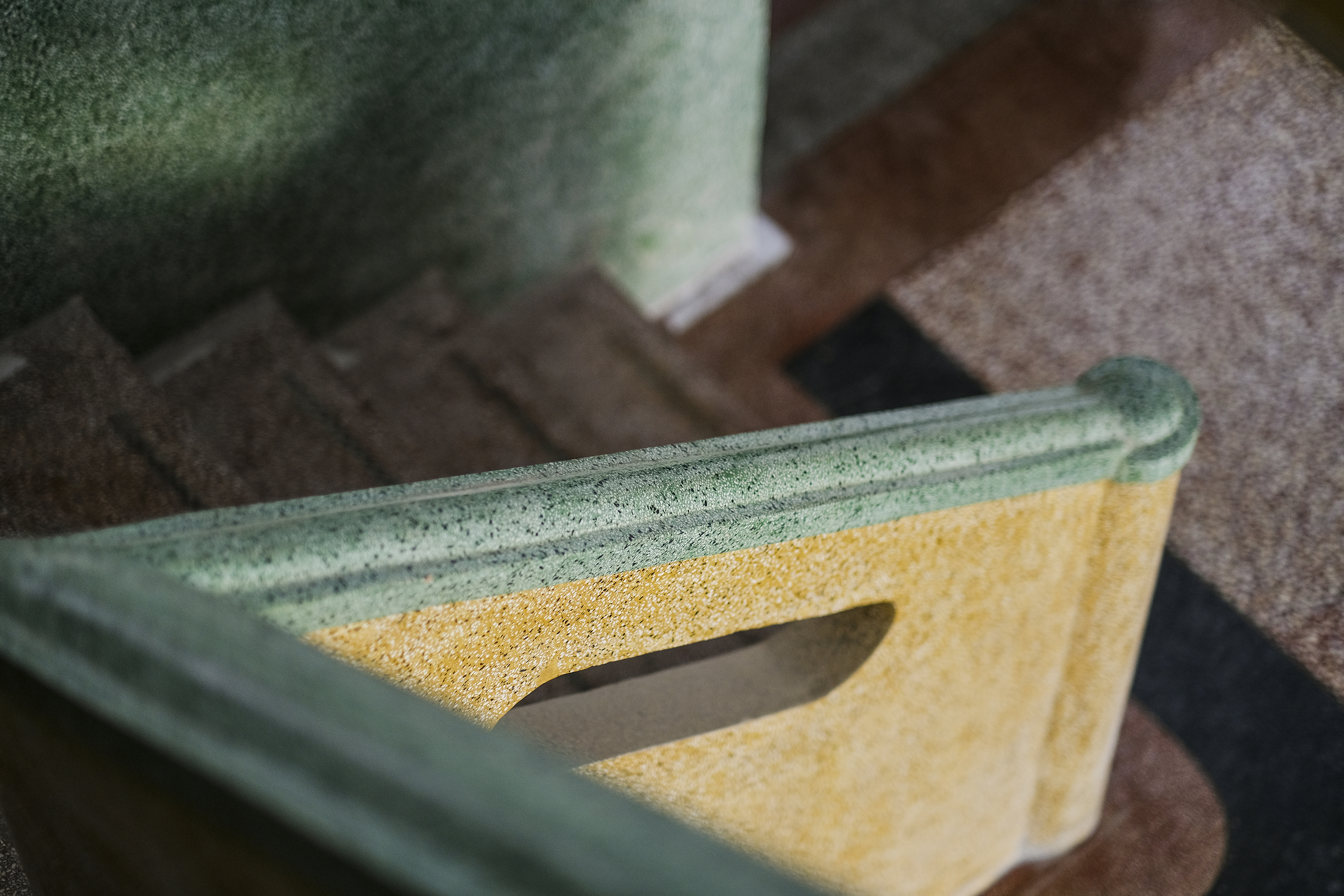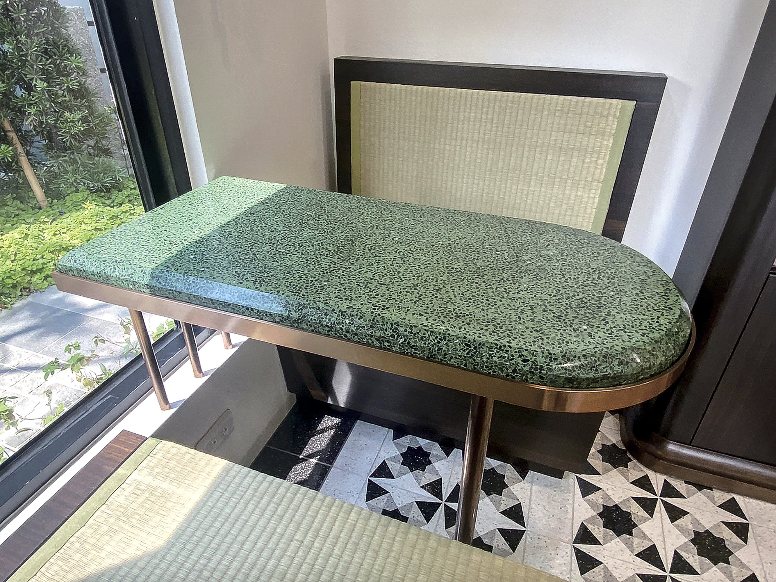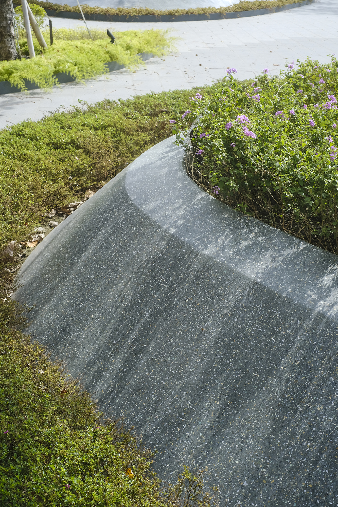 Nhóm thi công do anh Trần Bỉnh Nguyên dẫn đầu đã xây dựng một bục trồng hoa cảnh quang bằng đá mài terrazzo ở không gian công cộng của tòa nhà. Bề mặt cong liền mạch và mịn màng, nhìn từ xa nhưng trông như được cắt từ một tảng đá lớn, nhưng giá thành xây dựng lại rẻ hơn.