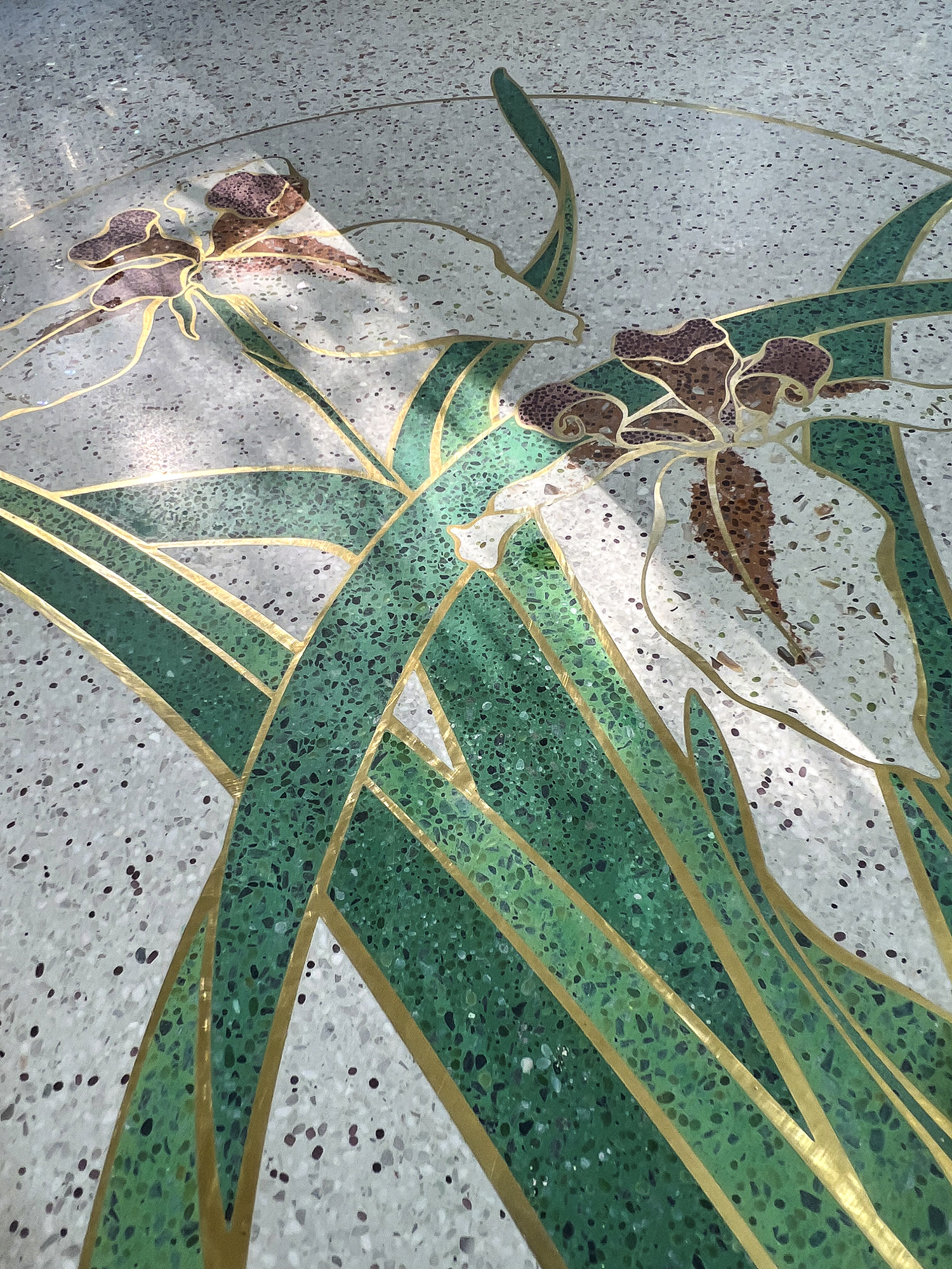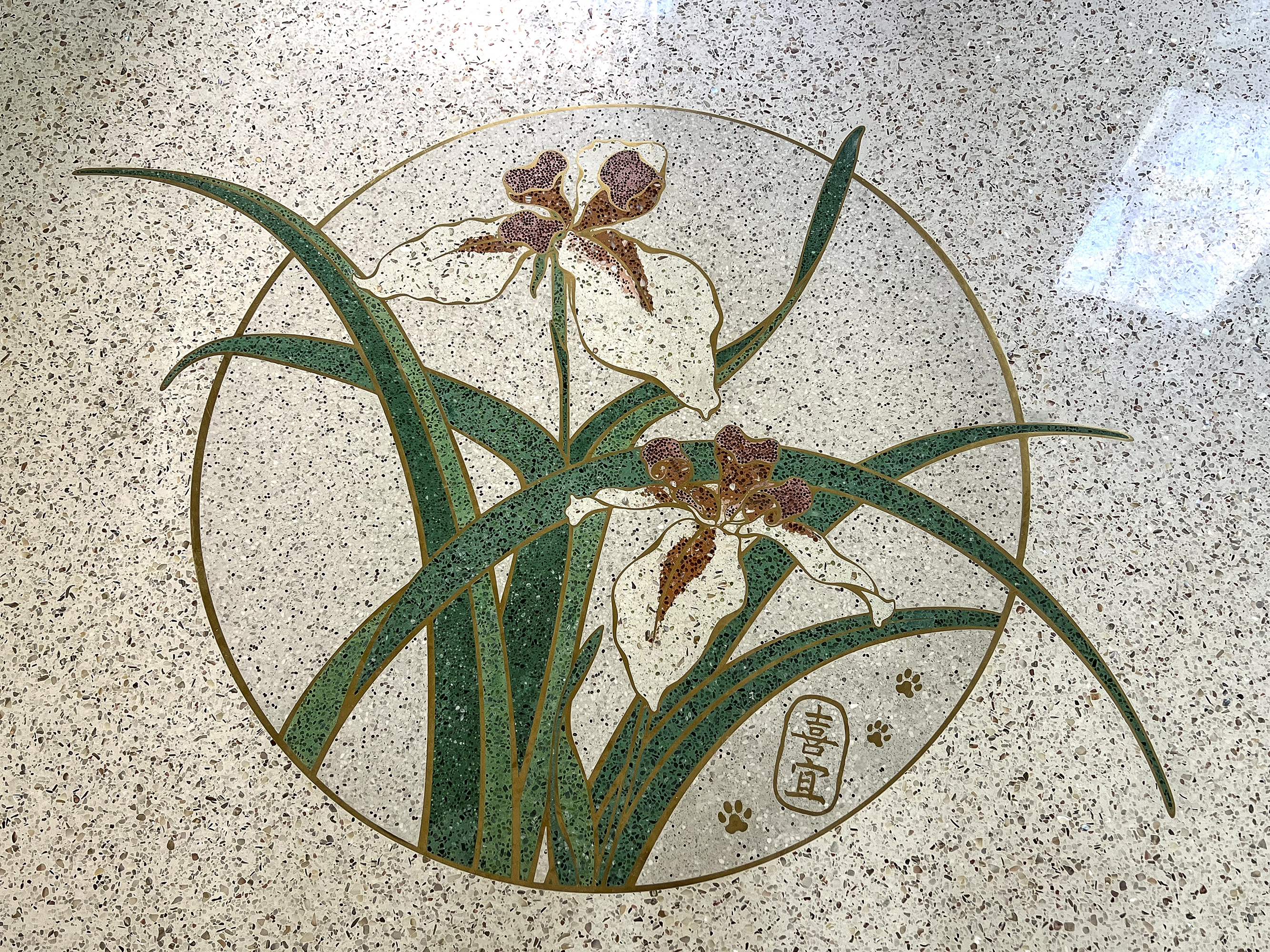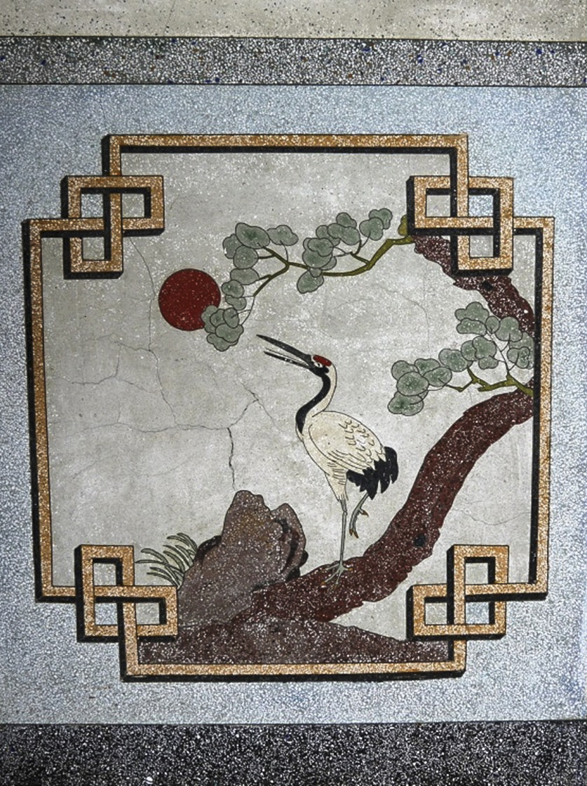 Vào những năm 1960, Điện Tam Bảo, Điện Quan Âm và Điện Đại Hùng Bảo sau khi được trùng tu, các bức tường, cột trụ và sàn nhà đều được giữ lại những tác phẩm làm từ đá mài terrazzo tuyệt đẹp, hoa văn bao gồm hình học lập phương, hoa lá, động vật và các sự tích về Đức Phật Thích Ca Mâu Ni. ( Ảnh: Diệp Tuấn Lân cung cấp)