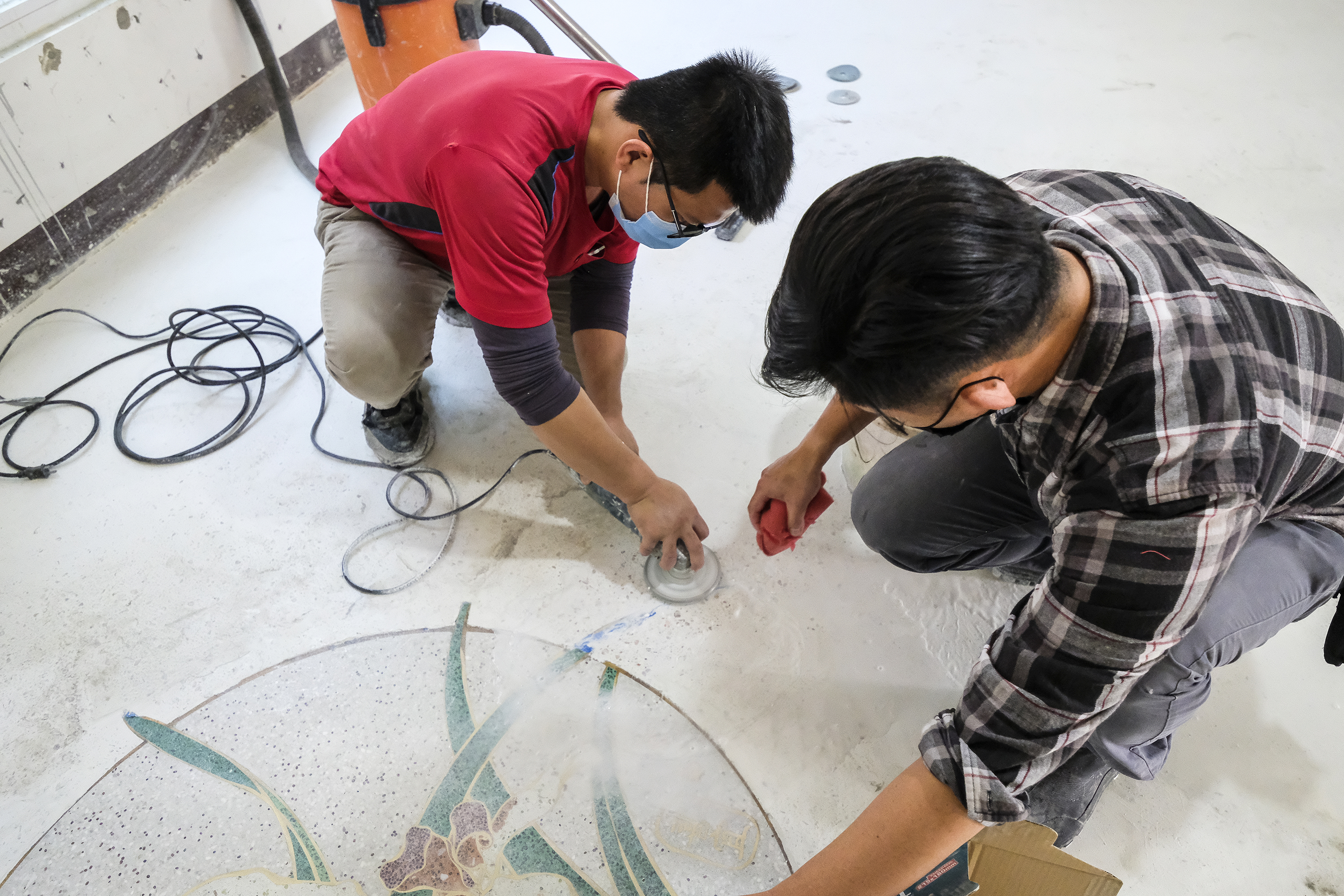 Anh Trần Bỉnh Nguyên dốc hết tâm huyết vào việc nghiên cứu phương pháp xây dựng đá mài terrazzo.