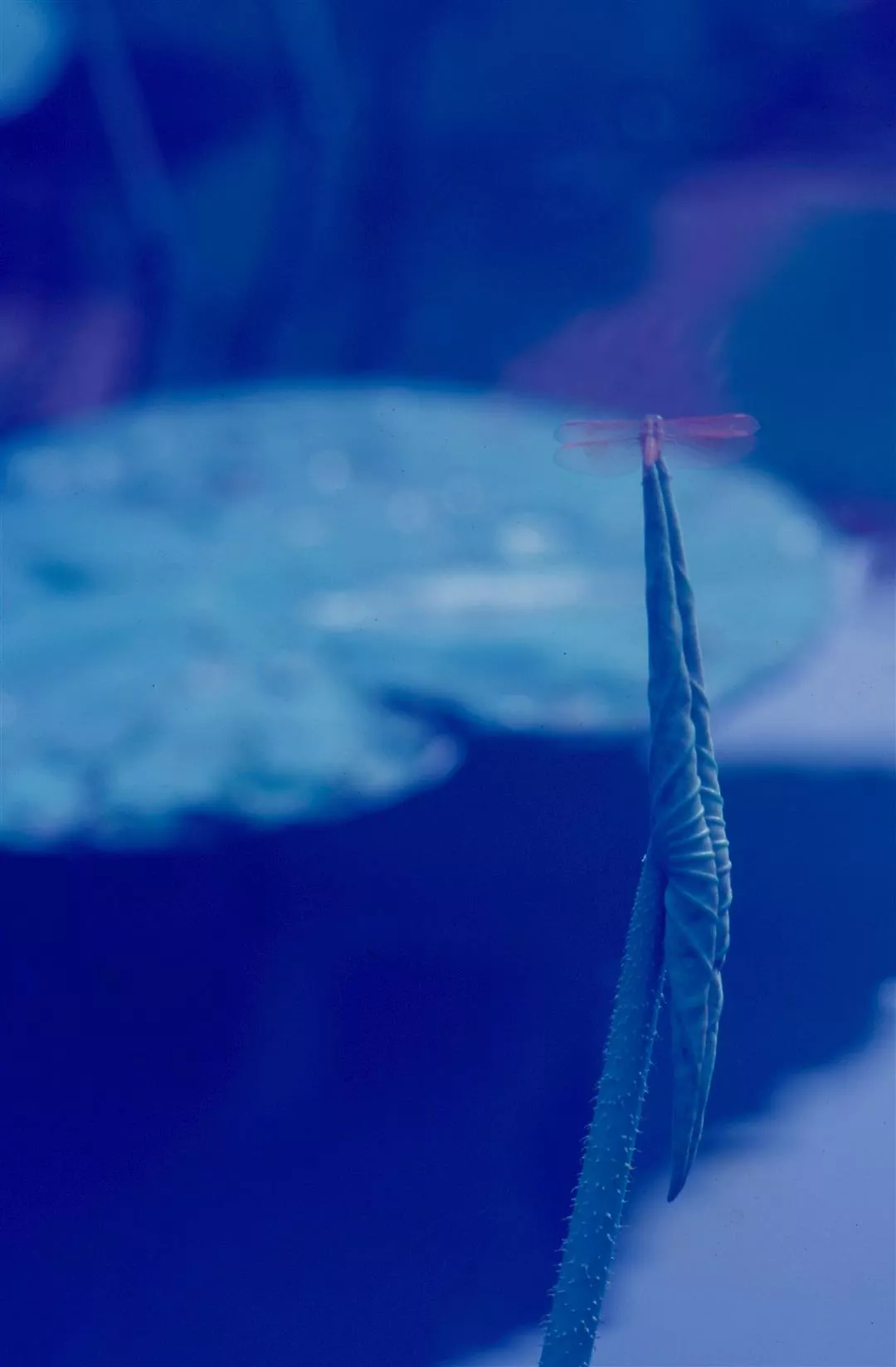 圖1:蜻蜓停駐在未開的荷葉上,構成有趣的畫面。(鐘永和)