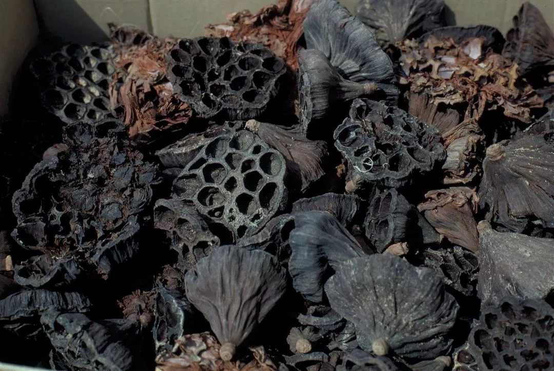 圖1.3:蓮蓬中藏有一粒粒的蓮子,剝下後,去殼、挑芯,才能食用。(鐘永和)