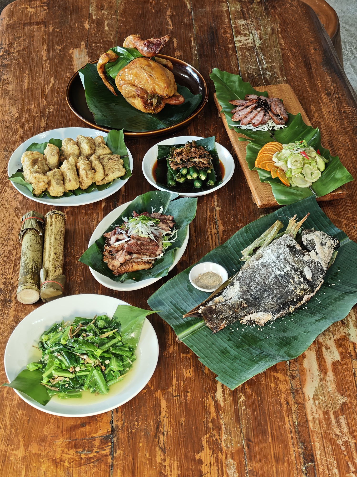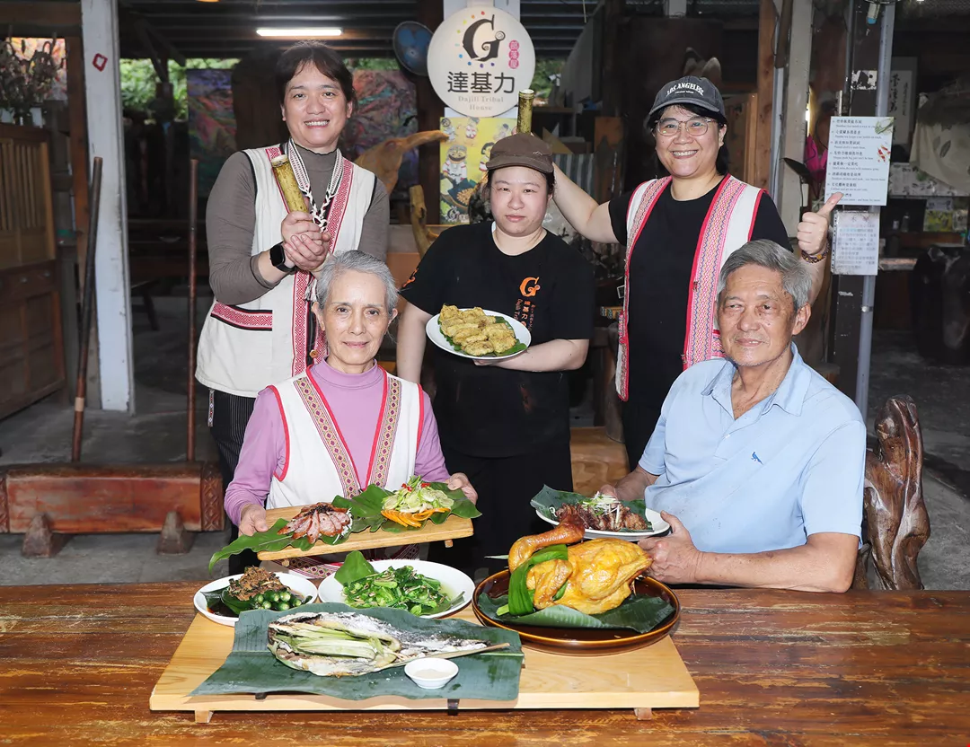 彭秀蘭團隊盛裝野菜、烤雞,邀客品嚐太魯閣「產地直送」的風味盛宴。