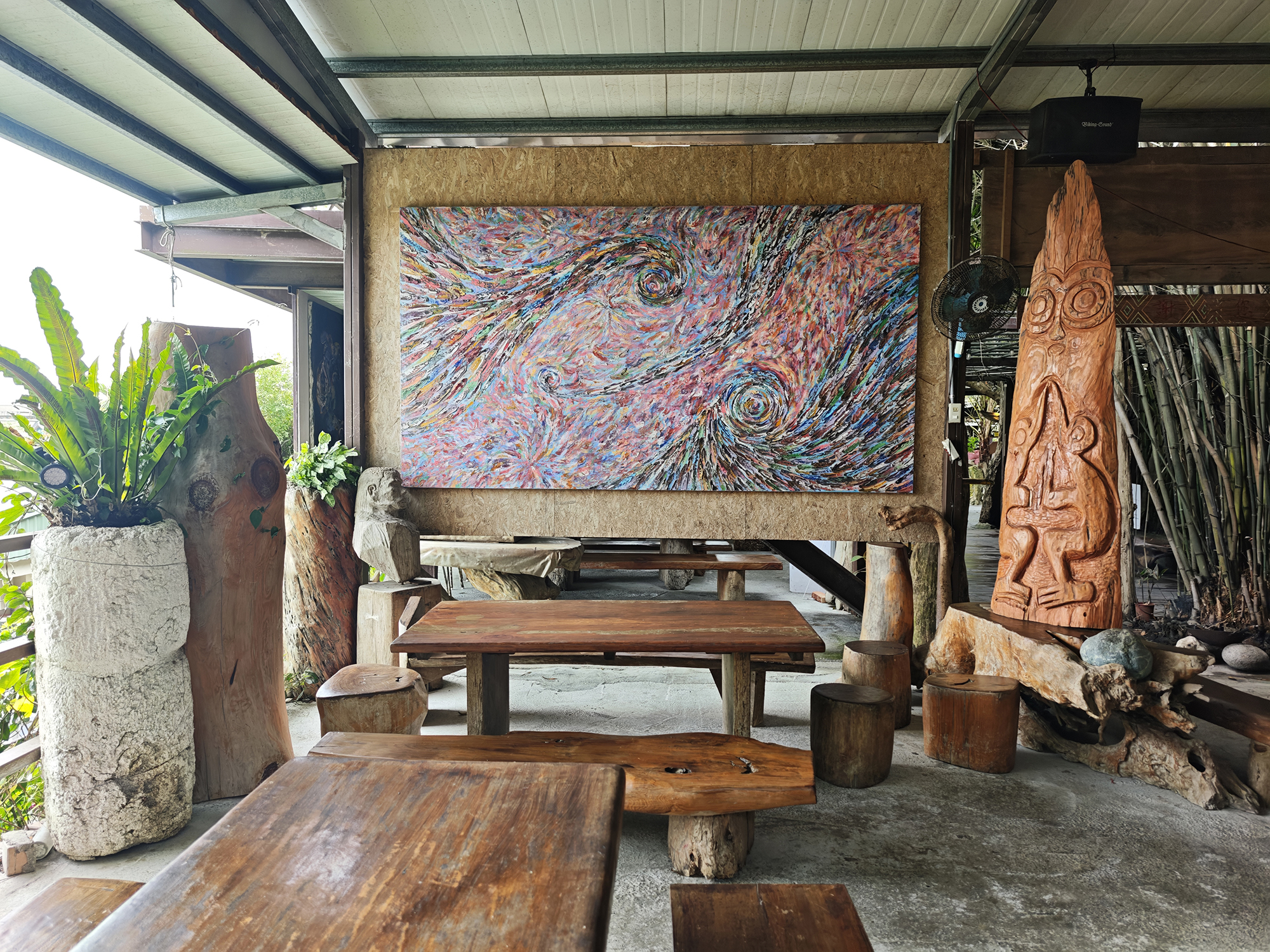 田媽媽的招牌是用彭秀蘭娘家的舊餐桌打造而成,承載家族傳承與部落記憶。