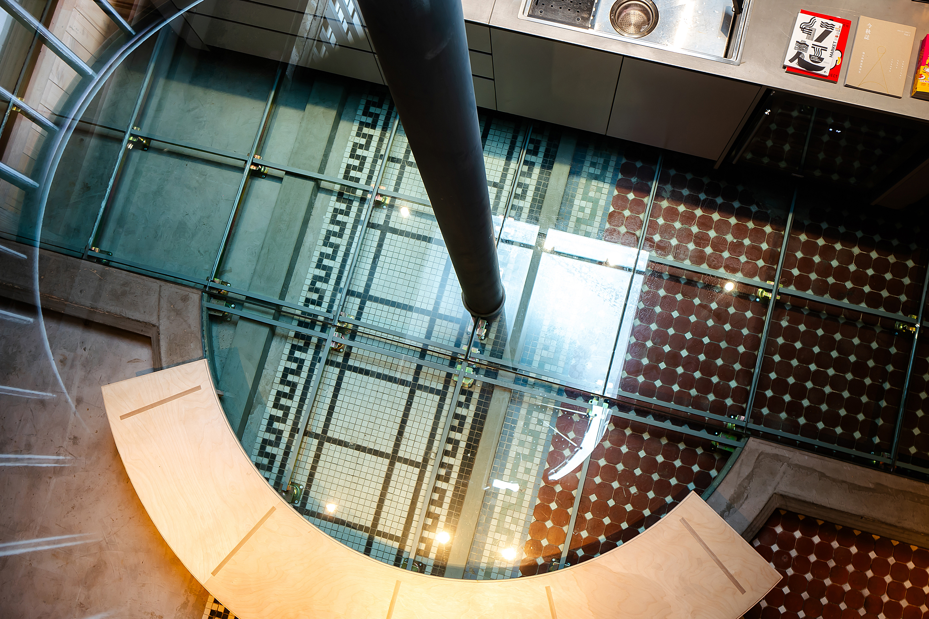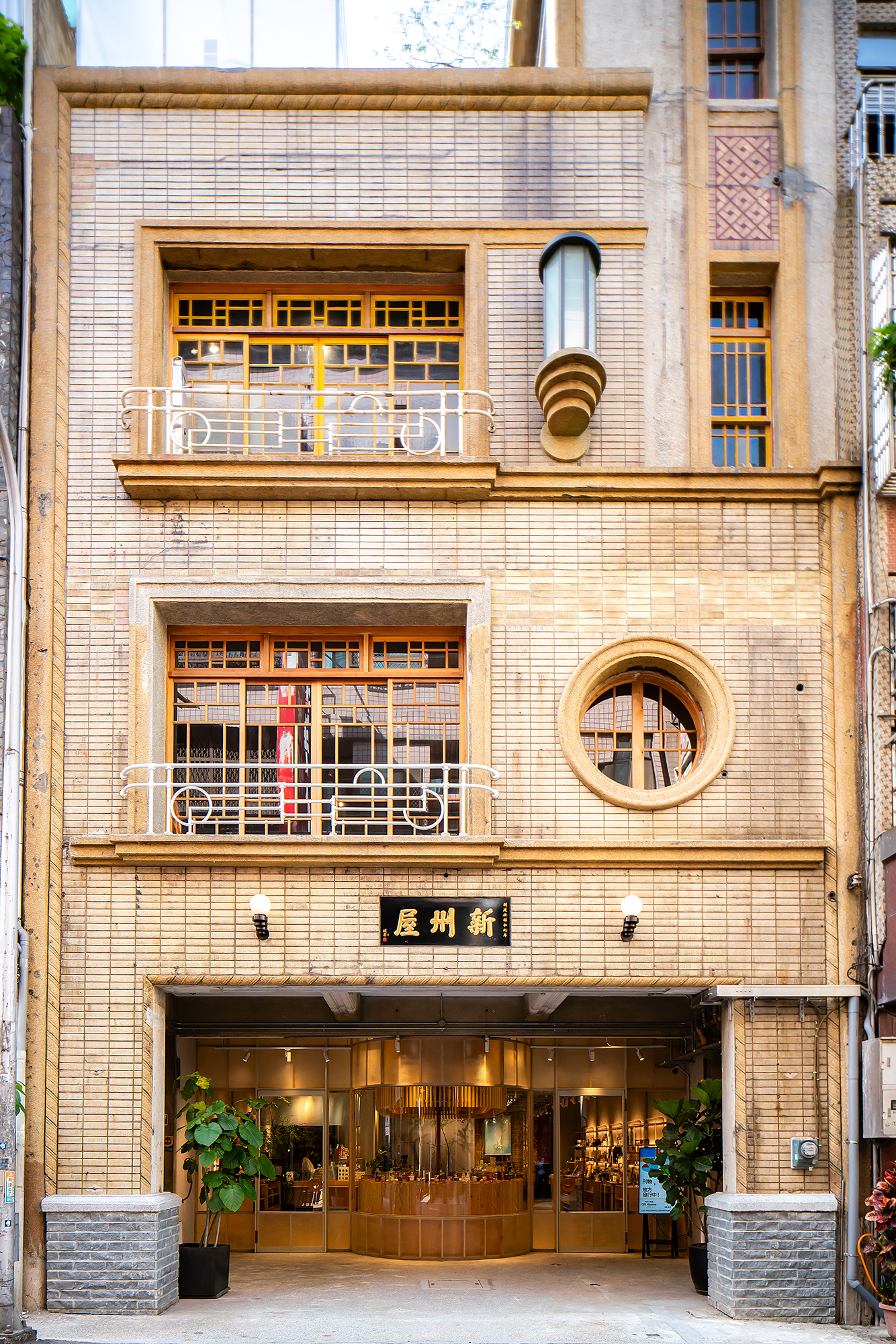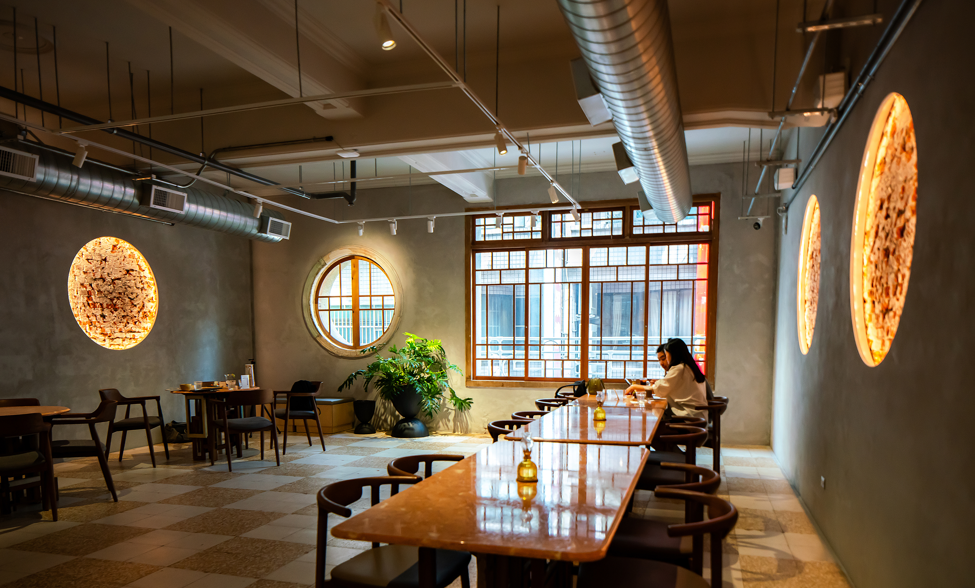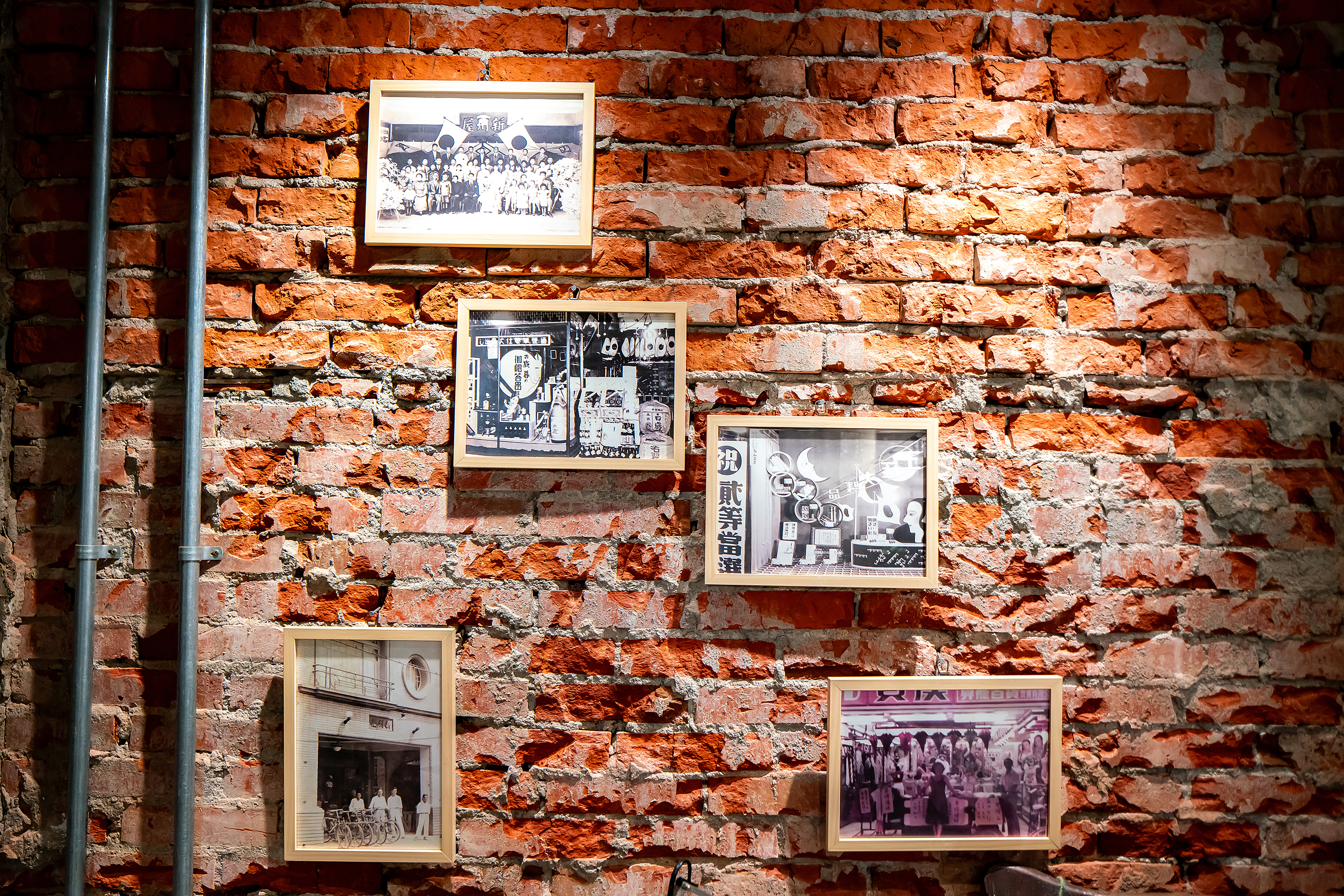 位於新州屋二樓的餐酒館,鏤空的泥作牆面可以看見舊日的磚牆。