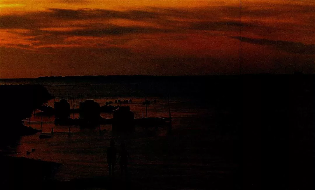 魚塭裏撈出數不清烏黑金亮的文蛤;草蝦、紅尾蝦活蹦亂跳;滑溜黏膩的鰻魚交錯盤結;釣蚵田在外海淺灘構成幾何圖;在充滿生命的海產中,台西的景象也鮮明、繁榮起來。